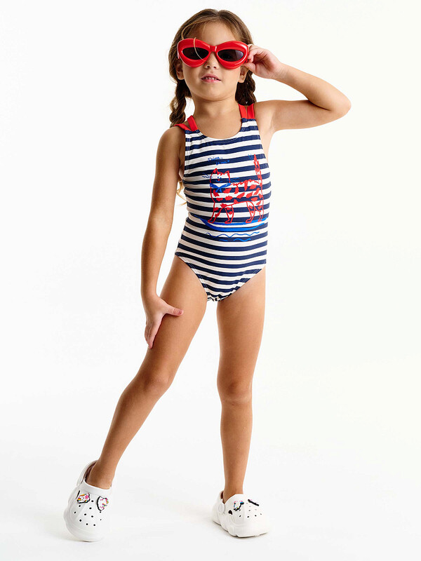 Модный слитный купальник для девочки. Модель с двумя парами лямок: одни идут прямо, вторые перекрещиваются на спинке. Бретели мягкие, не сползают, исключают трение и раздражение. Передняя часть изделия с подкладкой — не просвечивает. Детский купальник выполнен из полиамида и эластана — он прекрасно тянется, не теряя при этом своей формы, не выгорает и быстро сохнет. По переду модель декорирована красивым принтом. Принт мягкий и стойкий, не боится частых стирок. Купальник красивый подходит для девочек дошкольного, младшего школьного возраста и девочек-подростков. Отличный вариант для летнего отдыха, пляжа, моря и бассейна. Модный купальник — чудесный подарок дочери, внучке или сестре на любой праздник. Выбирайте нужный размер по таблице размеров на фото. Цвет товара на экране вашего устройства может отличаться от цвета изделия вживую. Товар возврату и обмену не подлежит.
