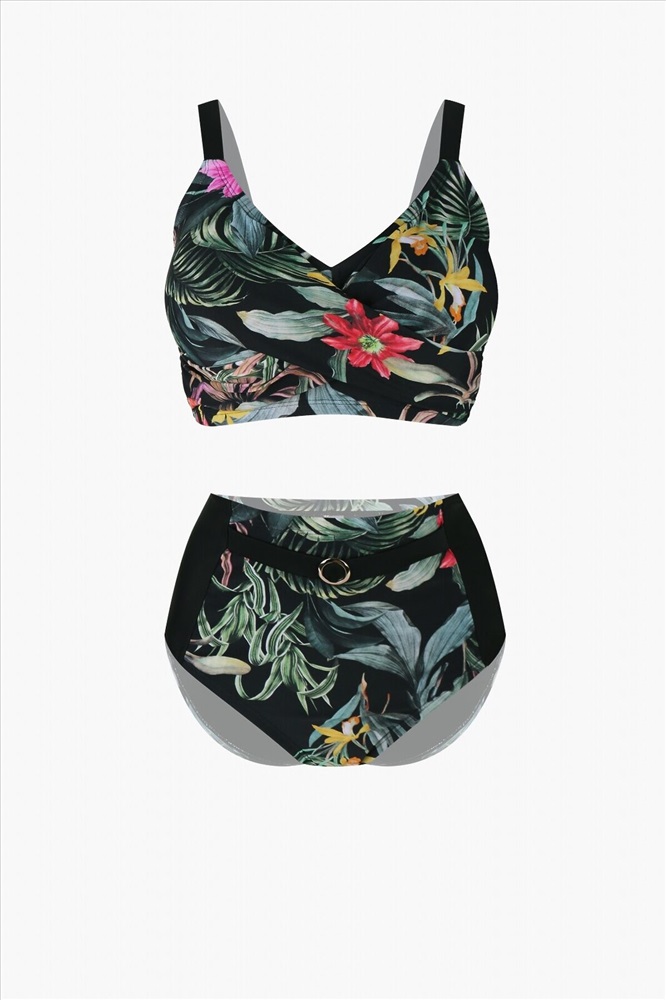 ID товара: 1087945 Состав: 82% Полиамид, 18% Эластан Сезон: Весна/Лето Модель трусов: Слипы Модель купальника: Раздельный Модель лифа/бюстгальтера: Со съемными чашками Страна бренда: Россия Страна производства: Россия Раздельный купальник, изготовленный из полиамида, выполнен в классическом черном цвете с нанесенным цветочным принтом. Купальник состоит из бюстгальтера и трусов слипов. Бюстгальтер, застёгивающийся сзади, имеет съемные поролоновые чашки без эффекта Push-Up. Трусы слипы высокой посадки имеют мягкую тонкую резинку на талии и украшены спереди лентой с декоративным элементом. Комментарии к товару