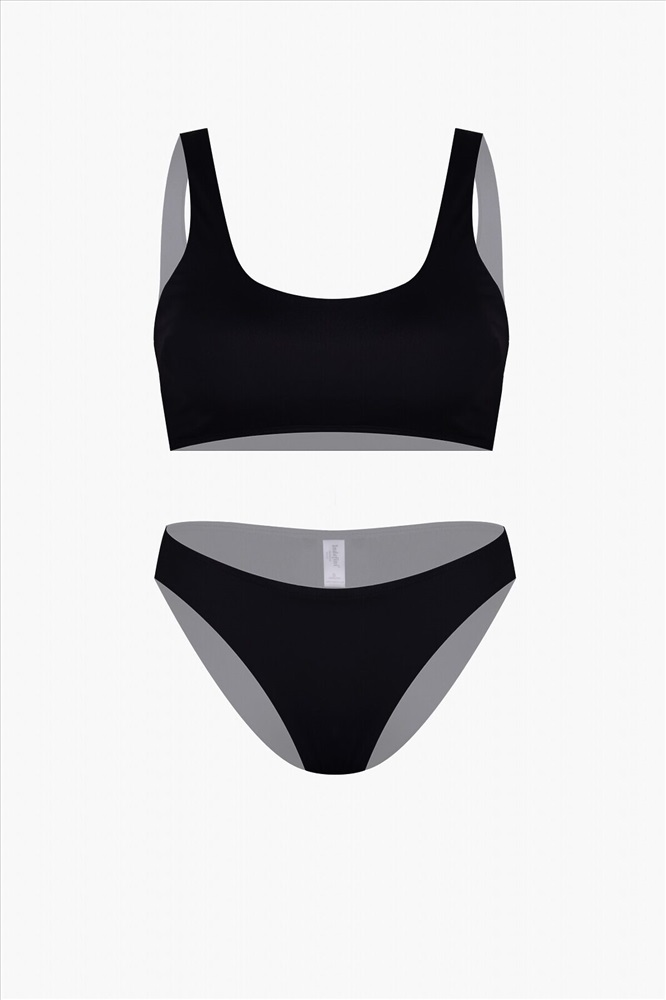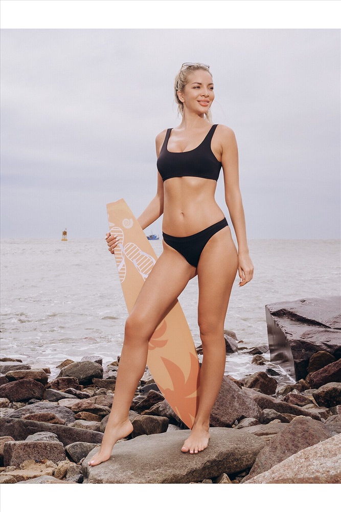 Страна производства: Россия Раздельный купальник, изготовленный из полиамида, выполнен в классическом черном цвете. Купальник состоит из бюстгальтера и трусов слипов. Бюстгальтер без косточек имеет поролоновые чашки без Push-Up. Трусы слипы имеют среднюю посадку и мягкую эластичную резинку на талии.