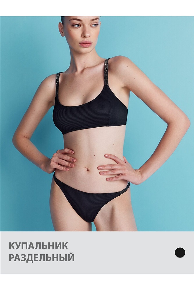 ID товара: 1060331 Состав: 82% Полиамид, 18% Эластан Сезон: Весна/Лето Модель трусов: Слипы Модель купальника: Раздельный Модель лифа/бюстгальтера: Топ Страна бренда: Италия Страна производства: Китай Раздельный купальник из микрофибры в рубчик. Материал быстро высыхает, комфортно ощущается на теле, устойчив к воздействию хлора и ультрафиолета. Полностью на подкладке, не просвечивает. Топ на тонких регулируемых бретелях обеспечивает превосходную поддержку. Съемные вкладыши позволяют создать дополнительный объем. Плавки «танга» с низкой линией талии и узким боком эффектно подчеркивают бедра и длину ног. Объединяет несколько актуальных трендов: лаконичный крой, фактура в рубчик и сияющая россыпь страз на бретелях. Купальник роскошно смотрится в любой обстановке – на пляже, у бассейна, в загородном отеле или на фотосессии. Комментарии к товару