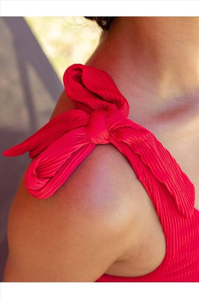 ID товара: 1030534 Состав: 82% Полиамид, 18% Эластан Сезон: Весна/Лето Модель купальника: Слитный Страна бренда: Китай Страна производства: Китай Женский слитный купальник потрясающе красивого красно-кораллового цвета из эластичной ткани в ребристый рубчик. Женственный вырез-каре и завязки-банты на плечах очаровательно подчеркивают зону декольте. Кроме того, банты защитят плечи от палящего солнца, так как эти части тела, как правило, сгорают первыми. Широкий пояс с пряжкой подчеркивает талию. Модель скроет возможные нежелательные нюансы фигуры, благодаря фасону, и скорректирует силуэт, благодаря упругой ткани и подкладке по всему объему. Лиф имеет конструкцию со встроенными съемными чашками и поддержкой груди. Это необычайно женственная и эффектная модель не останется незамеченной! Комментарии к товару