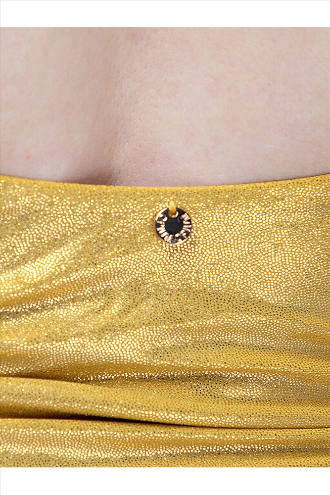 Женский слитный купальник трендовой сияющей золотой расцветки. Золотые купальники шикарно смотрятся на пляже. Золотой купальник подойдет раскрепощенным ярким девушкам, красиво подчеркнет бронзовый загар или нежно оттенит светлую кожу. На ваш выбор два оттенка: белое золото и желтое золото. Выигрышный фасон скроет возможные проблемные места и красиво подчеркнет фигуру. Легко снимать и надевать. Есть подкладка по всему объему, которая подтягивает и держит форму. Съемные поролоновые чашки помогут завершить идеальный силуэт.