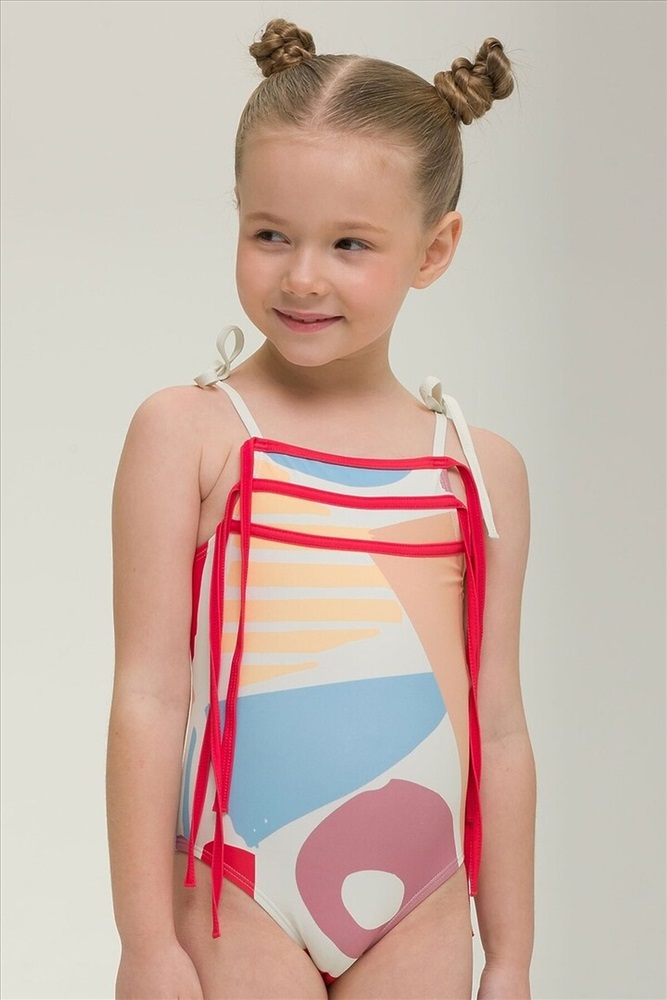 Модный слитный купальник для девочек. Яркий купальник с принтом для юной русалочки и законодательницы моды пляжа и моря. Купальник с горизонтальным вырезом горловины на тонких завязывающихся бретелях. Декорирован тремя контрастными рядами настроченных параллельно горловине пайпингов, переходящих в завязки. Купальник для девочки с принтом создан из качественной, специализированной ткани, хорошо пропускает воздух, плотно прилегает к телу ребенка и не соскальзывает во время купания. Костюм для плавания не становится тяжелый при намокании и очень быстро сохнет. Благодаря эластичности полотна, купальник слитный детский комфортно сядет по фигуре, его легко надевать и снимать. Стильный и практичный купальник для пляжа и для бассейна, подойдет для водных видов спорта, на пляж, для отдыха. Красивый сплошной купальник подойдет для малыша, для детей и подростка, которые любят загорать на пляже и купаться в воде. Закрытый купальник защитит от солнца и подарит максимум комфорта и свободы движений.