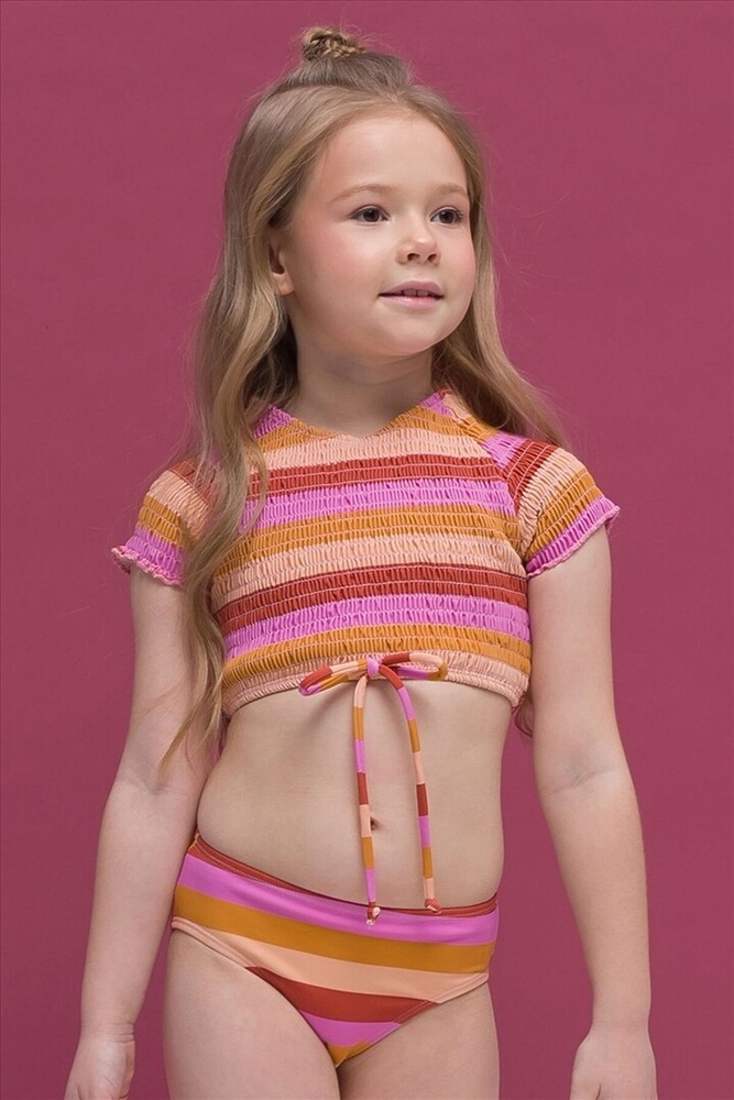 Модный раздельный купальник для девочек. Яркий купальник с принтом для юной русалочки и законодательницы моды пляжа и моря. Верх - топ кроп, укороченная футболка с рукавами реглан, круглой горловиной. Весь топ собран параллельными эластичными строчками. По переду топа пришит бантик из основной ткани. Низ - трусы с увеличенной высотой посадки. Топ можно носить отдельно с шортами, велосипедками все лето. Купальник для девочки с принтом в цветочек создан из качественной, специализированной ткани, хорошо пропускает воздух, плотно прилегает к телу ребенка и не соскальзывает во время купания. Костюм для плавания не становится тяжелый при намокании и очень быстро сохнет. Благодаря эластичности полотна, купальник детский комфортно сядет по фигуре, его легко надевать и снимать. Стильный и практичный купальник для пляжа и для бассейна, подойдет для водных видов спорта, на пляж, для отдыха. Красивый купальник подойдет для малыша, для детей и подростка, которые любят загорать на пляже и купаться в воде. Защитит от солнца и подарит максимум комфорта и свободы движений.