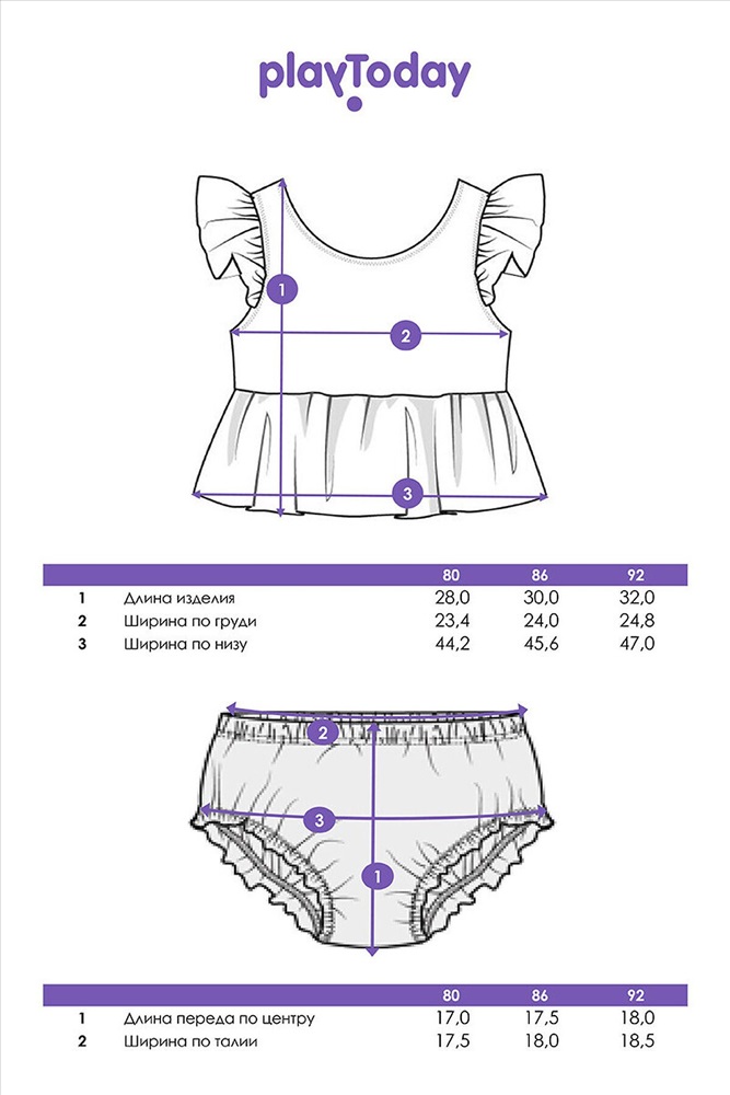 Производитель: PLAYTODAY ID товара: 1121923 Состав: 85% Полиэстер, 15% Эластан Сезон: Весна/Лето Модель трусов: Слипы Модель купальника: Раздельный Модель лифа/бюстгальтера: Топ Страна бренда: Германия Страна производства: Китай