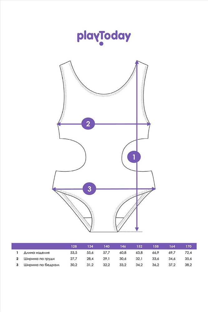 Производитель: PLAYTODAY ID товара: 1122129 Состав: 85% Полиэстер, 15% Эластан Сезон: Весна/Лето Модель купальника: Слитный Страна бренда: Германия Страна производства: Китай