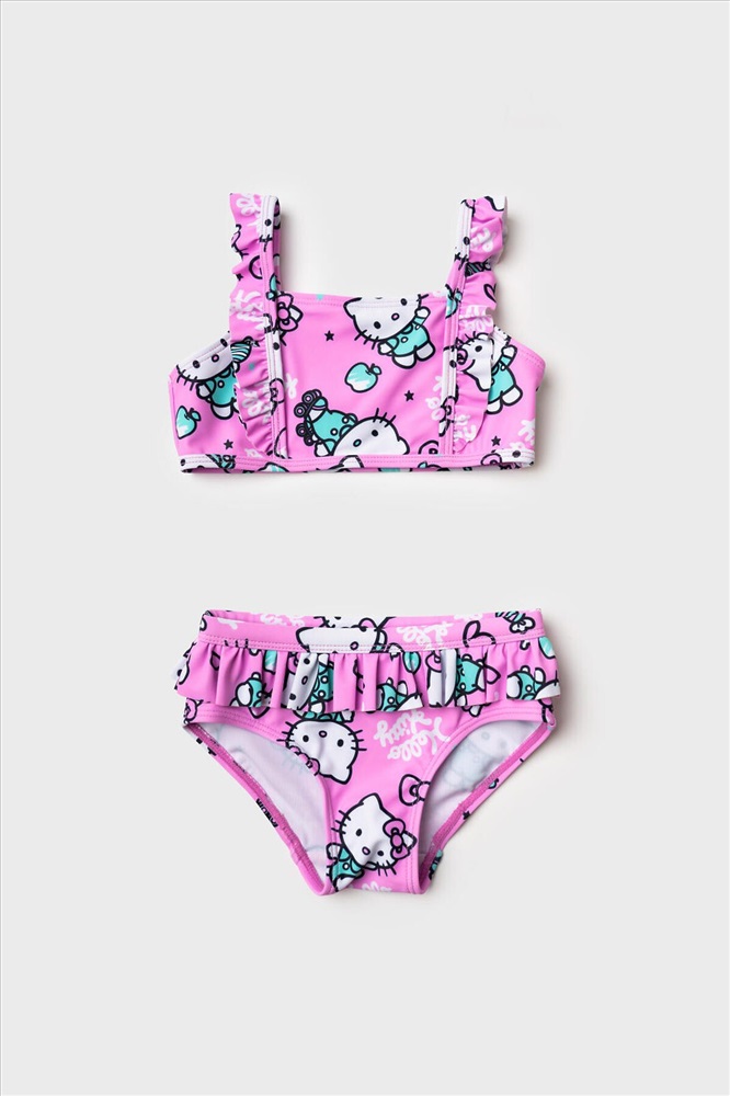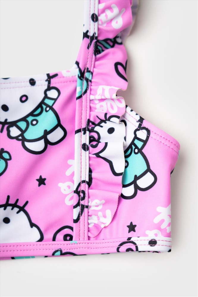 ID товара: 1241319 Состав: 85% полиэстер, 15% эластан Сезон: Весна/Лето Модель купальника: Раздельный Страна бренда: Германия Страна производства: Китай Купальник детский раздельный для девочки. Выполнен в светло-розовом цвете с принтом Hello Kitty, конфетами и сердечками. У топа — широкие бретели с милыми воланами, которые делают образ особенно воздушным. Плавки украшены воланом по линии талии, создавая нежный. Все детали сделаны из мягкой эластичной ткани, с подкладкой внутри. Благодаря UF-защите, ткань сохраняет первоначальный вид даже при длительном пребывании на солнце. Подходит для плавания и активного отдыха. Комментарии к товару