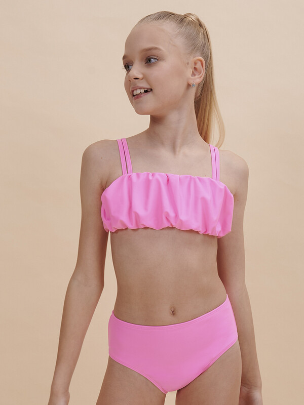 Состав: верх: 80%полиамид 20%эластан, подклад: 100%полиэстер, низ: 80%полиамид 20%эластан, подклад: 100%полиэстер Яркий и стильный раздельный купальник для девочки. Топ актуальной объёмной формы"баллон" — по низу и верху сборки. Топ двойной, не просвечивает. Двойные тонкие и мягкие бретели не сползают, исключают трение и раздражение. Сзади предусмотрена возможность регулировки длины бретелей. Трусы классические высокой посадки, аккуратные и комфортные. Детский купальник выполнен из полиамида и эластана — он прекрасно тянется, не теряя при этом своей формы, не выгорает и быстро сохнет. Модель представлена в четырёх трендовых цветах: голубой, жёлтый, розовый и зелёный. Купальный костюм однотонный, без декоративных элементов. В линейке представлены детские купальники следующих размеров: 3 (98); 4-5 (104-110); 6-7 (116-122); 8-9 (128-134); 10-11 (140-146). Купальник красивый подходит для девочек дошкольного, младшего школьного возраста и девочек-подростков. Идеальный вариант для летнего отдыха, пляжа, моря и бассейна. Модный купальник — замечательный подарок дочери, внучке или сестре на любой праздник. Выбирайте нужный размер по таблице размеров на фото. Цвет товара на экране вашего устройства может отличаться от цвета изделия вживую. Товар возврату и обмену не подлежит. Комментарии к товару