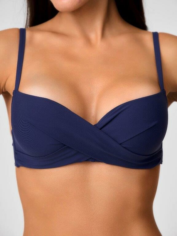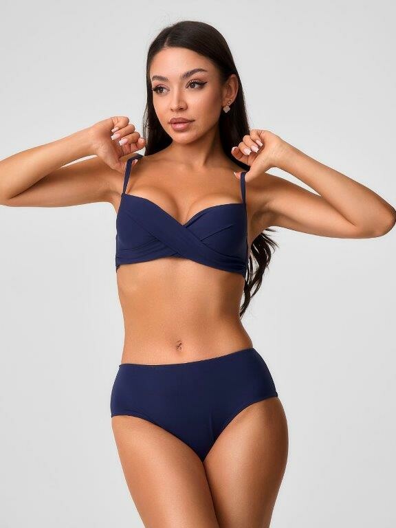 Производитель: Sensera Раздельный купальник из эластичного полотна с формованной чашкой  balconette с push-up во всех размерах.  На каркасах , с боковыми корсетными вставками. Спереди декоративное переплетение из ткани купальника. Бретели регулируемые. Два варианта ношения бретелей (классический и за шею). Пластиковая застежка. Плавки с завышенной талией. Переднее полотно с подкладом. Подгиб и плоский шов по талии и срезу ножек.