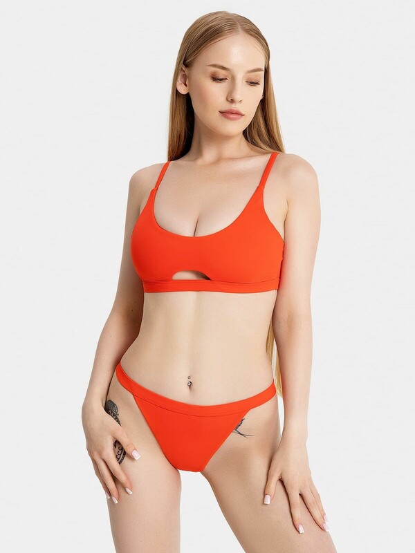 Деталь лифа цельная с декоративным отверстием по центру ниже уровня груди. Горловина, проймы и декоративная прорезь обтачаны подкладкой из трикотажного полотна, в шве обтачивания стоит эластичная тесьма (резиновая тесьма для купальников 7 мм). На подкладке прорези для чашек.