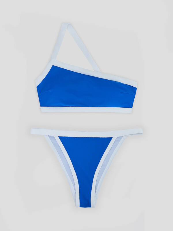 Раздельный купальник без застежек – на завязках. Чашки без косточек, с формованными вкладышами и декоративными складочками. Трусы с заниженной линией талии, также на завязках. Полотно идеально подходит для пляжа, солнца и воды!