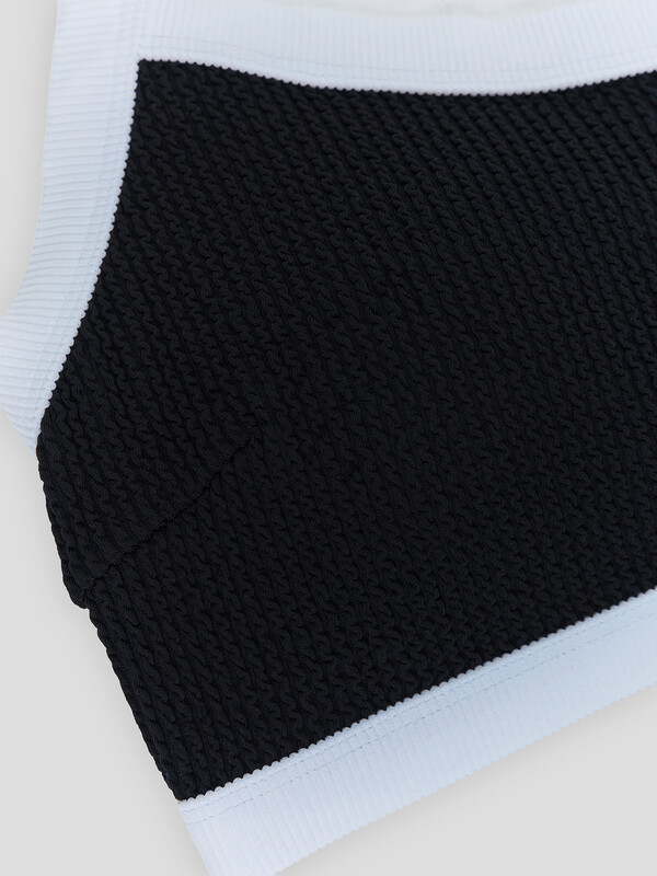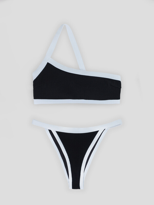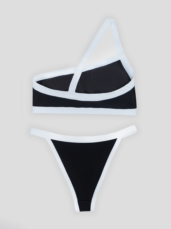Раздельный купальник без застежек – на завязках. Чашки без косточек, с формованными вкладышами и декоративными складочками. Трусы с заниженной линией талии, также на завязках. Полотно идеально подходит для пляжа, солнца и воды!