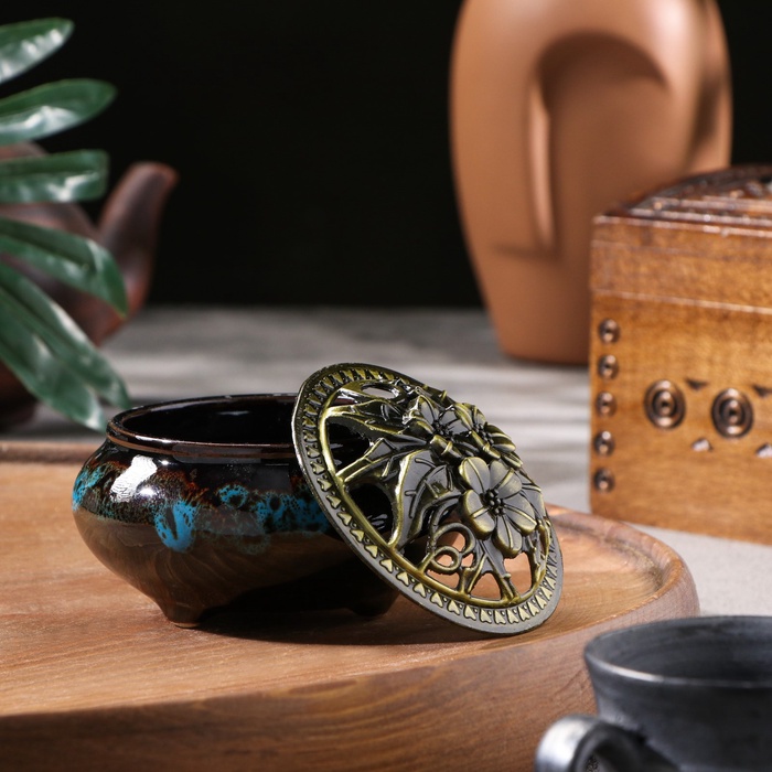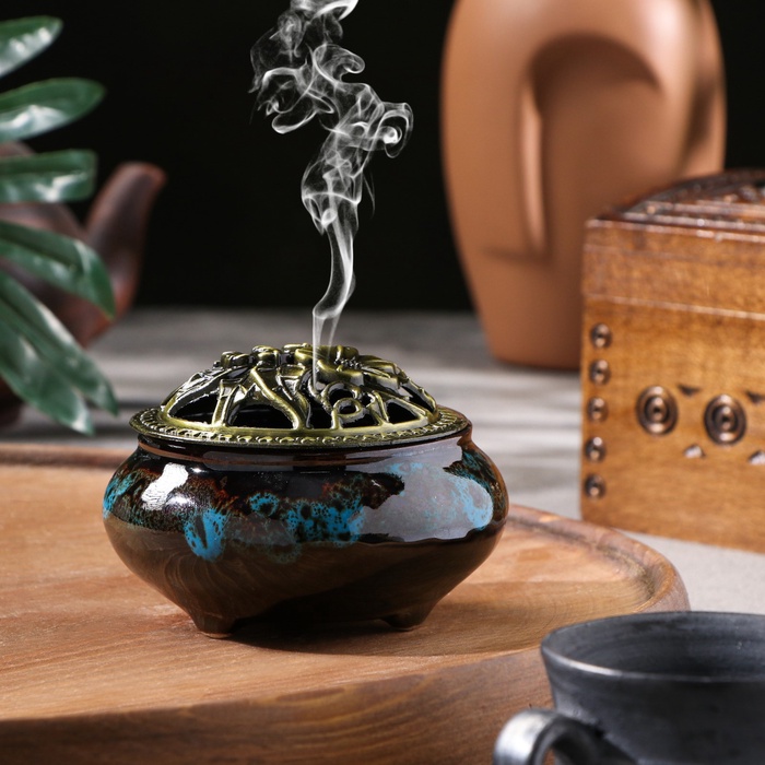 Интересует гармония и уют в доме? Обратите внимание на курильницу из керамики и металла, отличный вариант для тех, кто ценит искусство ароматерапии. Это стильное дополнение к интерьеру, создающее атмосферу спокойствия и расслабления.