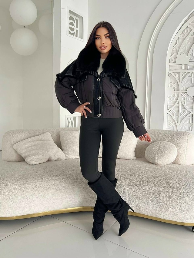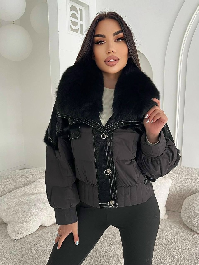 ⚜️Стильные комбинированные куртки с натуральным мехом , наполнитель пух , мех на воротнике песец 🔥