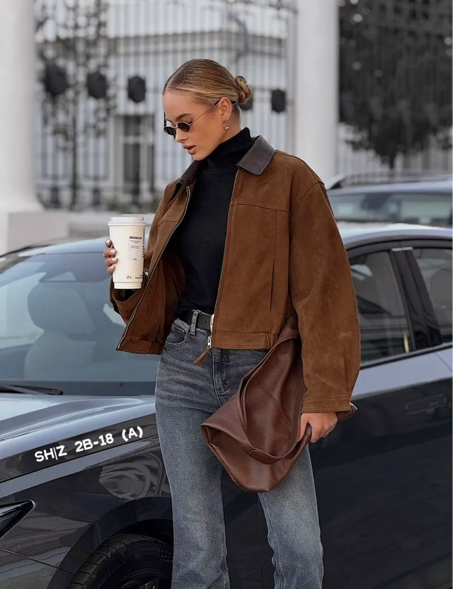Бомбер женский замшевый - незаменимая стильная вещь в гардеробе на сезон весна - осень! Короткая куртка из замши актуального коричневого цвета - отличный выбор для прохладных дней, вписывается в разные образы!