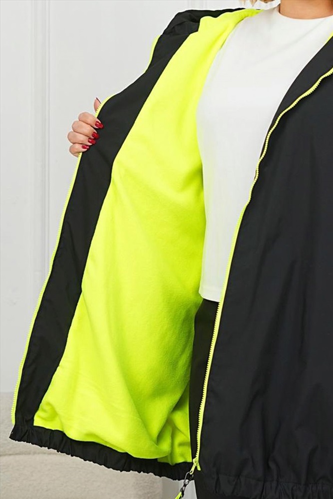 Куртка с зеленой подкладкой и регулировочными резинками черная