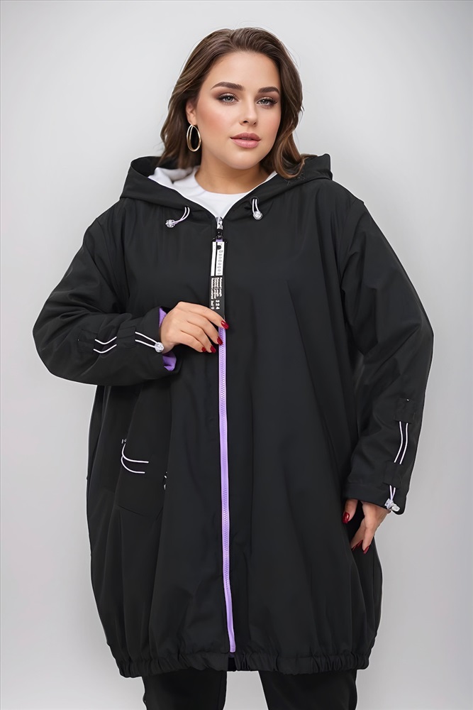 Куртка с фиолетовой подкладкой и регулировочными резинками черная