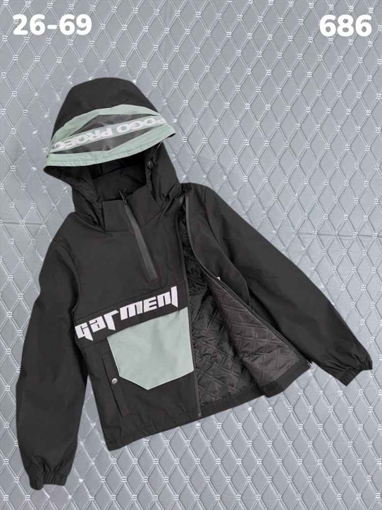 Верхняя одежда выполнена из водоотталкивающей мембранной ткани.