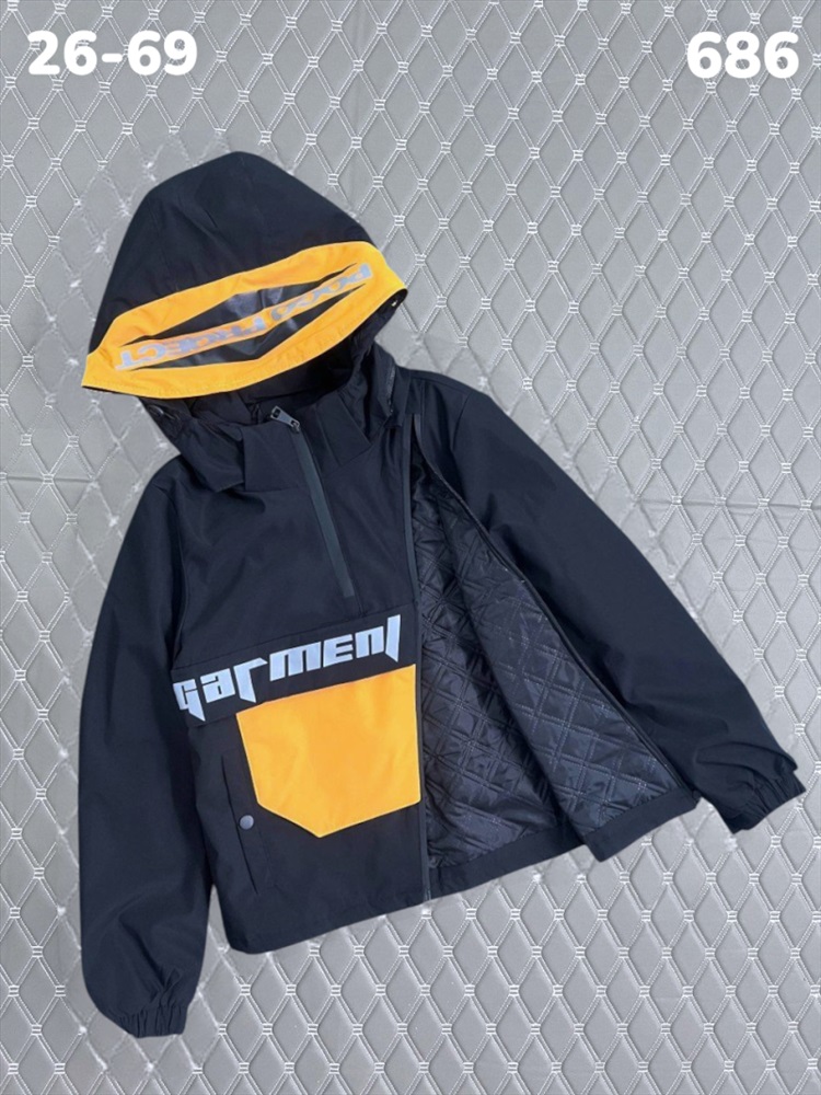 Верхняя одежда выполнена из водоотталкивающей мембранной ткани.