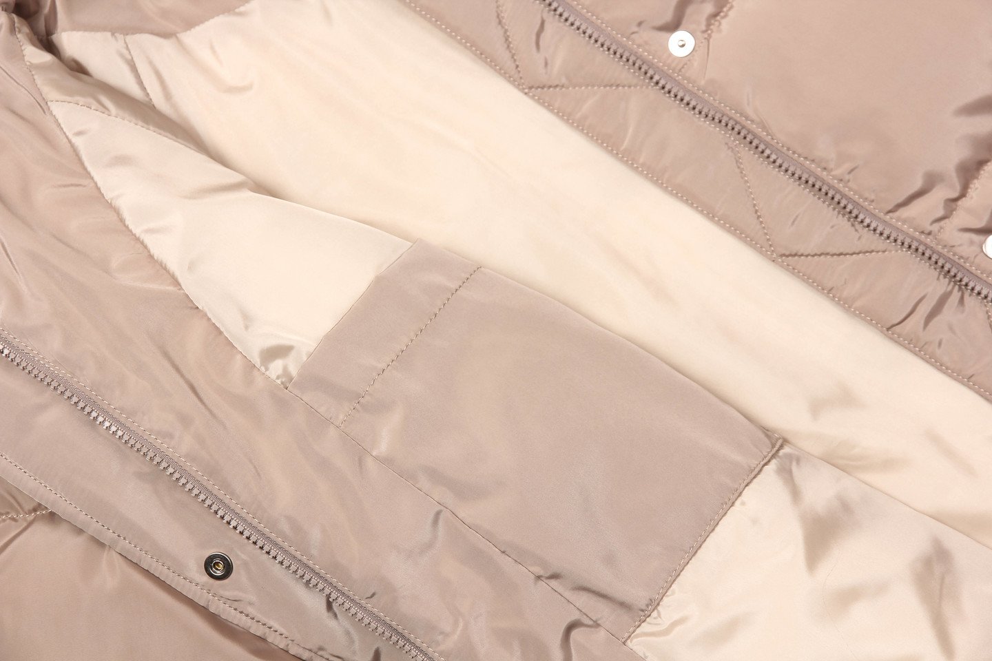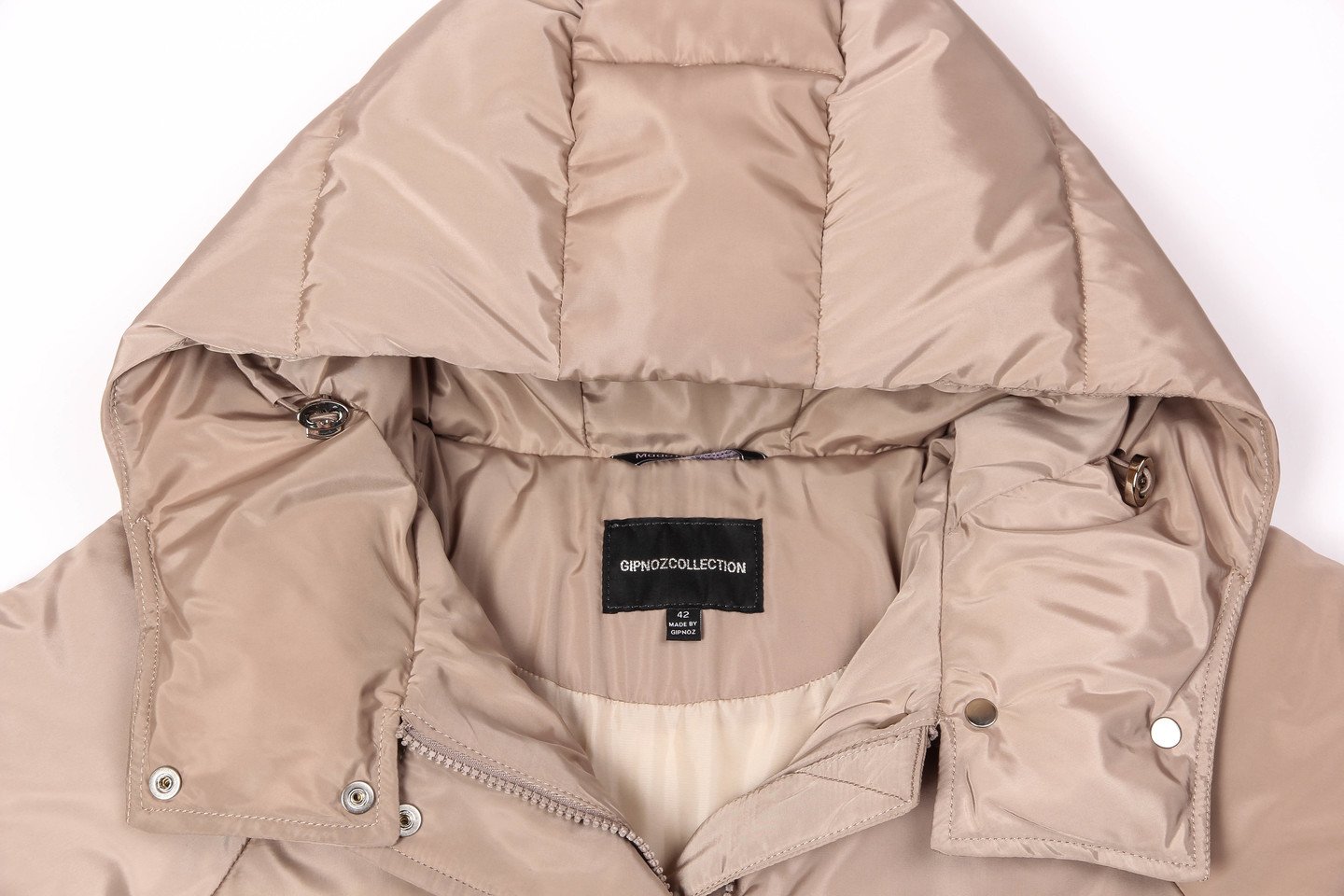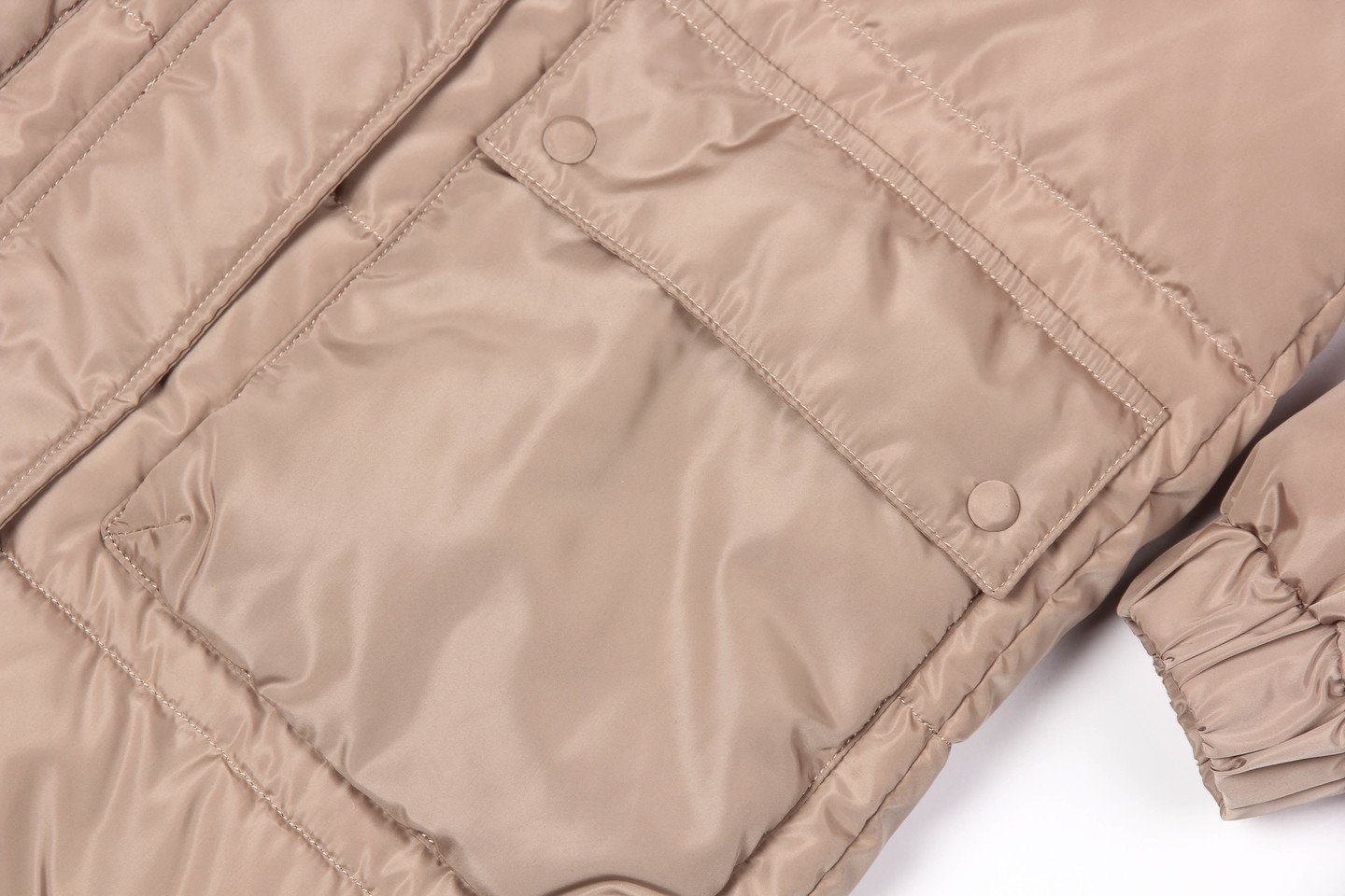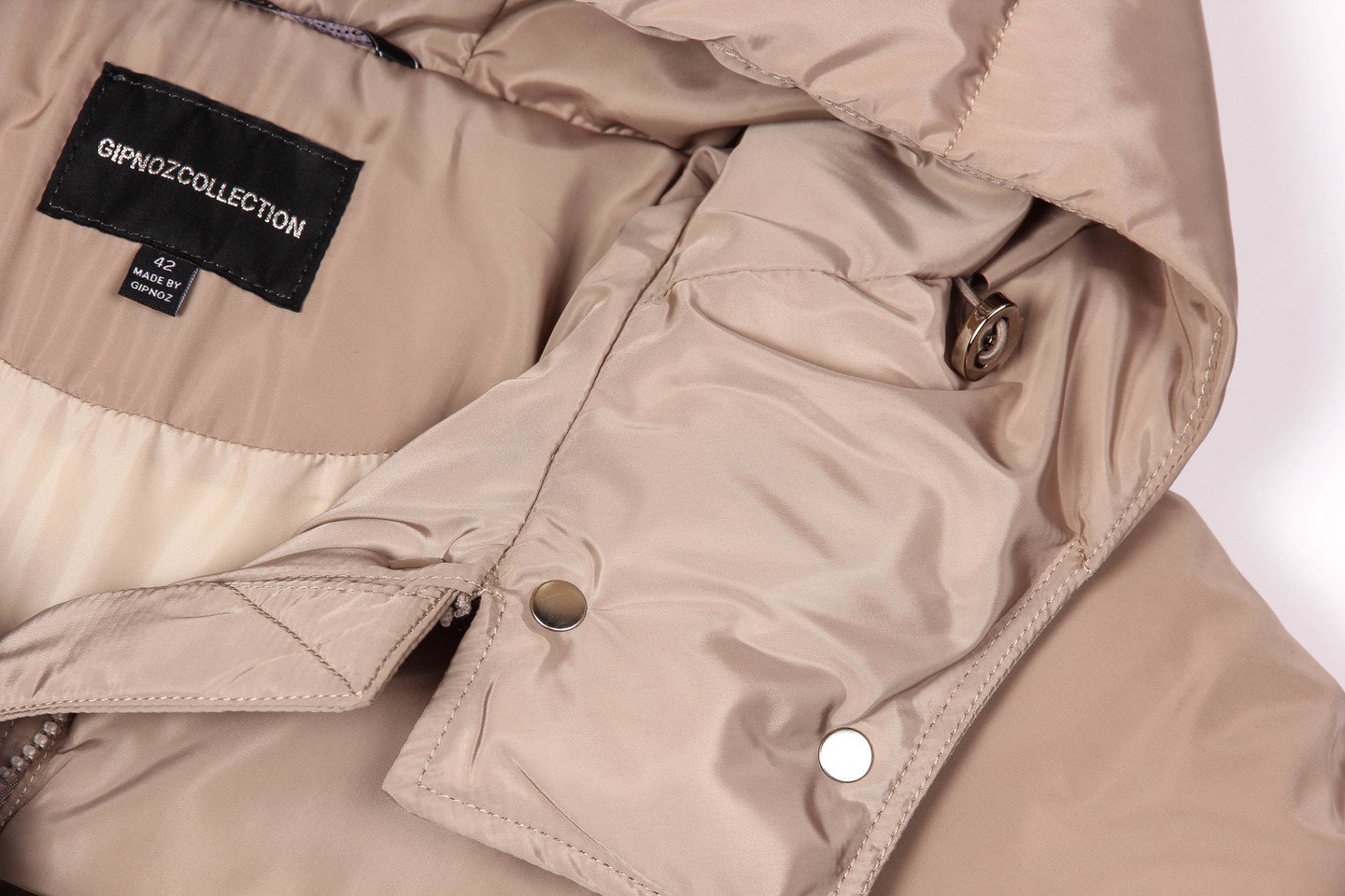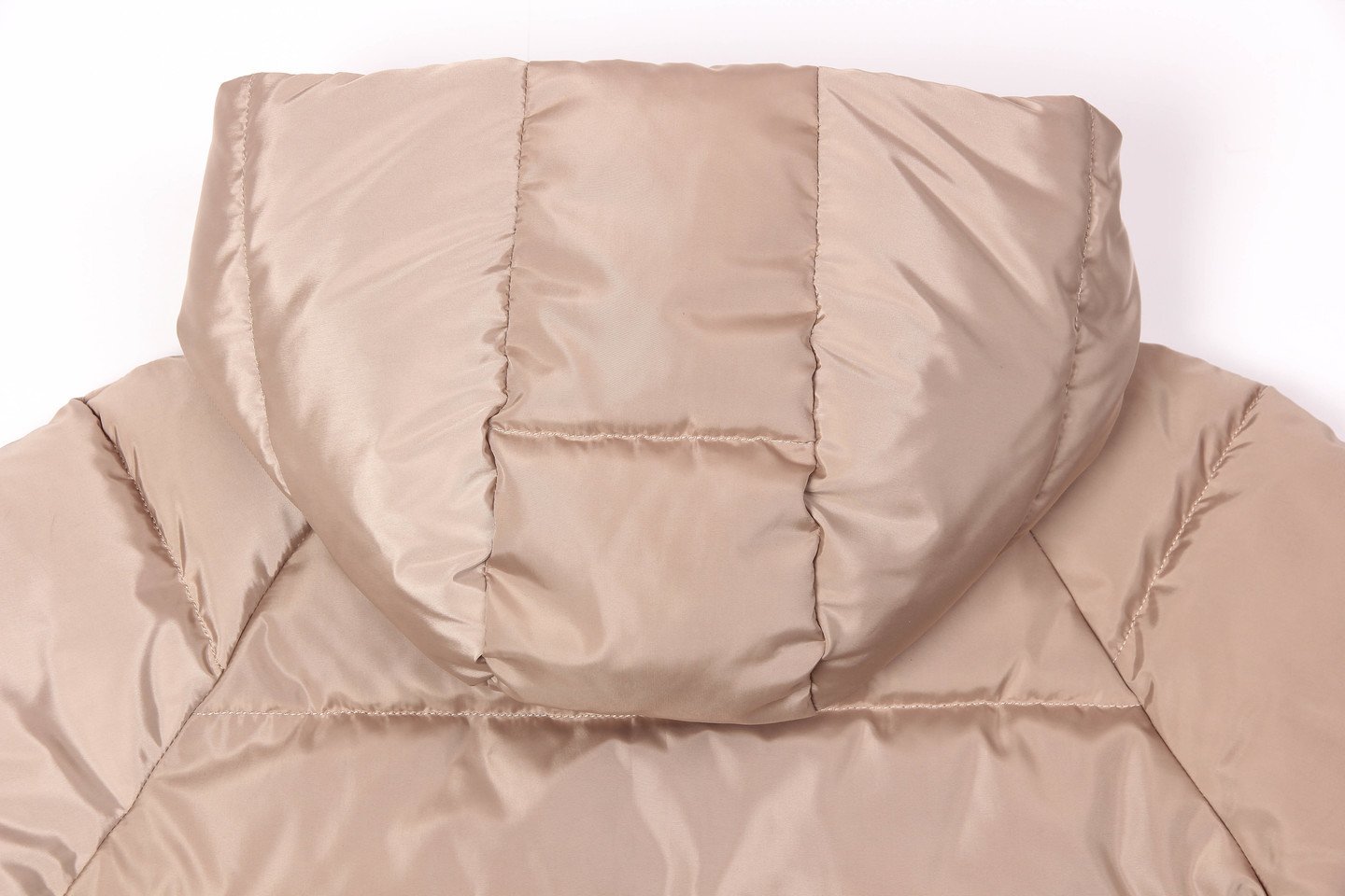 Застежка молния, закрыта планкой на кнопках. Капюшон со стойкой надежно защитит в холодное время года. Ткань плотная. Цветовая гамма очень разнообразная - от нежных оттенков до ярких принтов. Утеплитель синтепух-синтетический пух. На подкладе дополнительный слой, термофин 60. Температурный режим до -25.