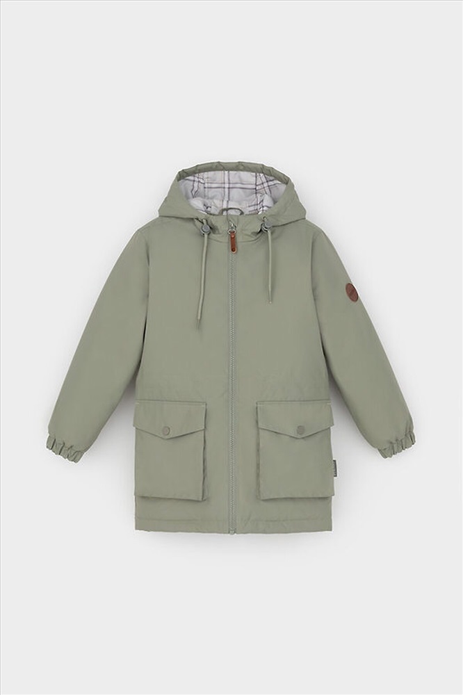 Демисезонная куртка для мальчика с утеплителем SEE®: 120 г/м2. Выполнена из мембранной ткани с дополнительной тефлоновой обработкой. Данный вид обработки предохраняет изделие от загрязнения и лучше отводит влагу. Подклад из 100% полиэстра. У изделия предусмотрена защита подбородка. Несъемный капюшон регулируется с помощью эластичного шнура со стопперами. Низ рукавов изделия имеет эластичную резинку для лучшего прилегания. На талии скрытая утяжка. Спереди два накладных кармана с клапанами на кнопках. Во всех изделиях верхнего ассортимента для безопасности ребенка предусмотрены светоотражающие элементы.