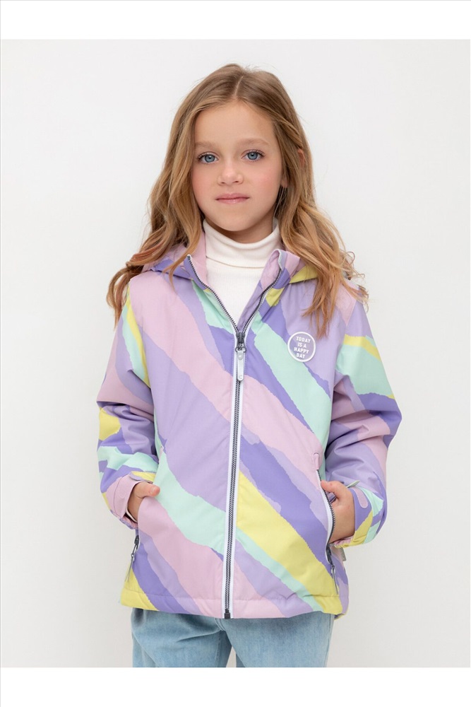 Демисезонная куртка для девочки с утеплителем SEE®: 120 г/м2. Выполнена из мембранной ткани с дополнительной тефлоновой обработкой. Данный вид обработки предохраняет изделие от загрязнения и лучше отводит влагу. Подклад из 100% полиэстера. У изделия предусмотрена защита подбородка. Несъемный капюшон с плоской резинкой по бокам . Утяжка по низу при помощи эластичного шнура со стопперами. Манжеты регулируются по ширине с помощью липучек. Во всех изделиях верхнего ассортимента для безопасности ребенка предусмотрены светоотражающие элементы.