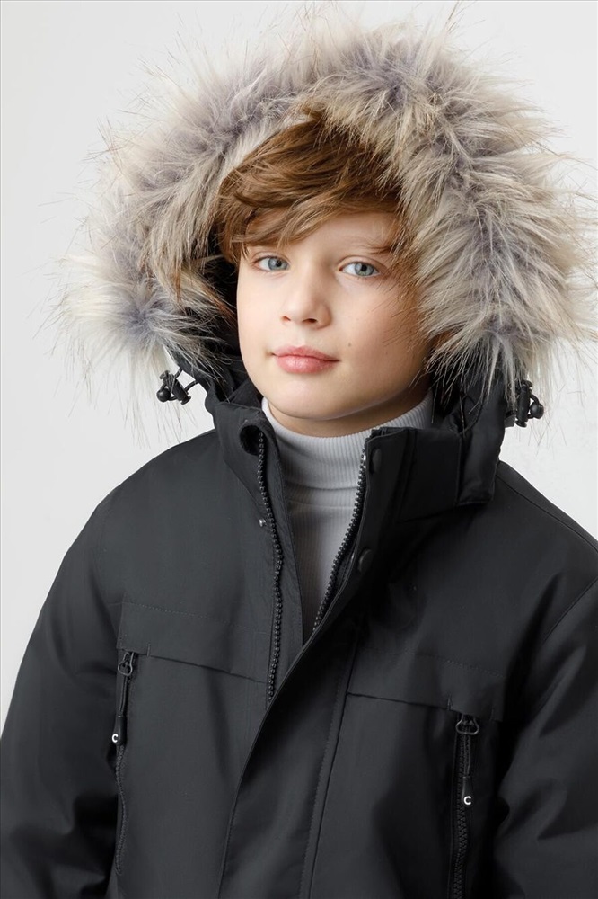 ID товара: 1225920 Состав: верх- 80% Нейлон, 20% Полиуретан; подклад- 100% Полиэстер; Утеплитель- 100% Полиэстер Сезон: Осень/Зима Длина: Средняя Фасон: Прямой Рукав: Длинные Вид застежки: Молния Тип карманов: Накладные Декоративные элементы: С капюшоном Утеплитель: с утеплителем, 250 г/м2 Стиль: повседневный Страна бренда: Россия Страна производства: Россия Зимняя куртка для мальчика с утеплителем SEE®: 250 г/м2. Выполнена из мембранной ткани с дополнительной тефлоновой обработкой, которая предохраняет изделие от загрязнений и отталкивает влагу. Подклад выполнен из 100% полиэстера Tricot. Куртка застёгивается на молнию и внешнюю планку с металлическими кнопками, предусмотрена защита подбородка. Съёмный капюшон на кнопках и липучках имеет эластичную утяжку со стопперами и отстёгивающуюся опушку из искусственного меха, регулируется по глубине. На рукавах внутренние эластичные манжеты, ширина рукава регулируется при помощи липучки. По бокам два накладных кармана и два кармана с молниями на груди. По талии эластичная утяжка со стопперами. Во всех изделиях верхнего ассортимента для безопасности ребёнка предусмотрены светоотражающие элементы. Комментарии к товару