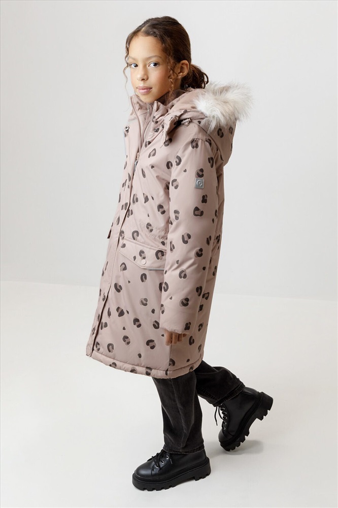 Зимнее пальто для девочки с утеплителем SEE®: 300 г/м2. Выполнено из мембранной ткани с дополнительной тефлоновой обработкой, которая предохраняет изделие от загрязнений и отталкивает влагу. Подклад выполнен из 100% полиэстера Tricot. Пальто застёгивается на молнию, предусмотрена защита подбородка. Съёмный капюшон на кнопках и липучках имеет отстёгивающийся искусственный мех. На рукавах мягкие манжеты. По бокам два кармана с клапанами, внутри карман на молнии. По талии эластичная утяжка со стопперами для регулировки ширины пальто. Во всех изделиях верхнего ассортимента для безопасности ребёнка предусмотрены светоотражающие элементы.