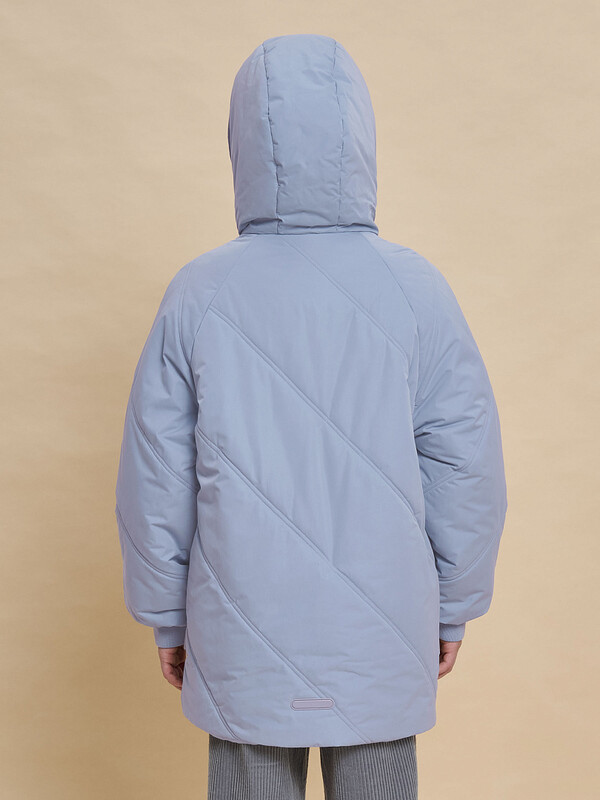 Куртка детская демисезонная на синтепоне для девочек, длиной до середины бедра. Изделие актуального оверсайз-силуэта выполнено из курточной ткани эпонж (шелковистая с шероховатой поверхностью) с водоотталкивающим покрытием — ребёнок не промокнет под дождём. Капюшон двухшовный, что обеспечивает анатомически правильную форму и комфортную посадку по голове. Высокое забрало создаёт ощущение тепла и уюта. Капюшон не отстегивается, застёгивается на скрытые магниты — ребёнку просто застёгивать и расстёгивать. Предусмотрена регулировка объема эластичными шнурами с пластиковыми стопперами. Центральная застёжка на пластиковую тракторную молнию, разъёмную с двух сторон — удобно садиться, пуллеры металлические, прочные. Куртка тёплая — дополнительно, для защиты от ветра и холода, центральная молния с изнаночной стороны закрыта ветрозащитной планкой. Рукава кроя реглан по низу собраны на манжеты из эластичной рибаны (ткань в рубчик) — они препятствуют задуванию ветра, при этом рибана долго сохраняет эластичность, не растягивается. Различные сочетания двойной стежки на разных деталях куртки являются самыми модными трендами этого сезона. Верхняя часть переда имитирует надетый поверх жилет со стежкой-ромб — оригинальная и стильная деталь, которую по низу можно собрать с помощью эластичного шнура со стопперами. Куртка стёганая дополнена большими накладными карманами оригинальной формы — практично и эффектно! Внутри также есть карман на молнии — удобно спрятать телефон. По низу изделия предусмотрена регулировка объёма на эластичный шнур с пластиковыми фиксаторами. В каждой куртке нейм-лейбл! Ребенок не потеряется и не потеряет куртку! На спинке и капюшоне расположены светоотражающие элементы — безопасность в тёмное время суток. За изделием просто ухаживать. Модель без принта. Куртка выполнена из полиэстера (+мембраны) — она тёплая, не промокает, легко стирается, быстро сохнет, сохраняет отличную форму и цвет надолго. Подкладка в капюшоне и по стану куртки из трикотажа, в составе которого преобладает высококачественный хлопок  — он мягкий, приятный на ощупь. В рукавах подкладка из полиэстера —  благодаря этому ребенку легко надевать куртку, руки не путаются в рукавах. Куртка выполнена из материала трендового фиолетового цвета. Её легко сочетать с различными брюками, юбками, колготками. Размерный ряд: 2 (92); 3 (98); 4 (104); 5 (110); 6 (116); 7 (122); 8 (128); 9 (134); 10 (140); 11 (146). Куртка подходит маленьким девочкам дошкольного и младшего школьного возраста, а также девочкам-подросткам. Идеальная куртка на осень и весну (демисезон). Рекомендуемый температурный режим: не ниже минус 15 градусов. Утеплитель: синтепон 200 г/м2. Модель подходит для носки в детский сад, школу, для прогулок и отдыха. Куртка водоотталкивающая утеплённая — отличный подарок для дочери или внучки на любой праздник.