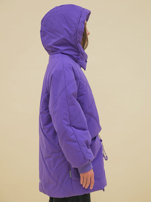 Состав: 100%полиэстер+мембрана, подклад: 60%хлопок 40%полиэстер, подклад рукавов: 100%полиэстер, утеплитель: 100%полиэстер Куртка детская демисезонная на синтепоне для девочек, длиной до середины бедра. Изделие актуального оверсайз-силуэта выполнено из курточной ткани эпонж (шелковистая с шероховатой поверхностью) с водоотталкивающим покрытием — ребёнок не промокнет под дождём. Капюшон двухшовный, что обеспечивает анатомически правильную форму и комфортную посадку по голове. Высокое забрало создаёт ощущение тепла и уюта. Капюшон не отстегивается, застёгивается на скрытые магниты — ребёнку просто застёгивать и расстёгивать. Предусмотрена регулировка объема эластичными шнурами с пластиковыми стопперами. Центральная застёжка на пластиковую тракторную молнию, разъёмную с двух сторон — удобно садиться, пуллеры металлические, прочные. Куртка тёплая — дополнительно, для защиты от ветра и холода, центральная молния с изнаночной стороны закрыта ветрозащитной планкой. Рукава кроя реглан по низу собраны на манжеты из эластичной рибаны (ткань в рубчик) — они препятствуют задуванию ветра, при этом рибана долго сохраняет эластичность, не растягивается. Различные сочетания двойной стежки на разных деталях куртки являются самыми модными трендами этого сезона. Верхняя часть переда имитирует надетый поверх жилет со стежкой-ромб — оригинальная и стильная деталь, которую по низу можно собрать с помощью эластичного шнура со стопперами. Куртка стёганая дополнена большими накладными карманами оригинальной формы — практично и эффектно! Внутри также есть карман на молнии — удобно спрятать телефон. По низу изделия предусмотрена регулировка объёма на эластичный шнур с пластиковыми фиксаторами. В каждой куртке нейм-лейбл! Ребенок не потеряется и не потеряет куртку! На спинке и капюшоне расположены светоотражающие элементы — безопасность в тёмное время суток. За изделием просто ухаживать. Модель без принта. Куртка выполнена из полиэстера (+мембраны) — она тёплая, не промокает, легко стирается, быстро сохнет, сохраняет отличную форму и цвет надолго. Подкладка в капюшоне и по стану куртки из трикотажа, в составе которого преобладает высококачественный хлопок — он мягкий, приятный на ощупь. В рукавах подкладка из полиэстера — благодаря этому ребенку легко надевать куртку, руки не путаются в рукавах. Куртка выполнена из материала трендового фиолетового цвета. Её легко сочетать с различными брюками, юбками, колготками. Размерный ряд: 2 (92); 3 (98); 4 (104); 5 (110); 6 (116); 7 (122); 8 (128); 9 (134); 10 (140); 11 (146). Куртка подходит маленьким девочкам дошкольного и младшего школьного возраста, а также девочкам-подросткам. Идеальная куртка на осень и весну (демисезон). Рекомендуемый температурный режим: не ниже минус 15 градусов. Утеплитель: синтепон 200 г/м2. Модель подходит для носки в детский сад, школу, для прогулок и отдыха. Куртка водоотталкивающая утеплённая — отличный подарок для дочери или внучки на любой праздник. Комментарии к товару