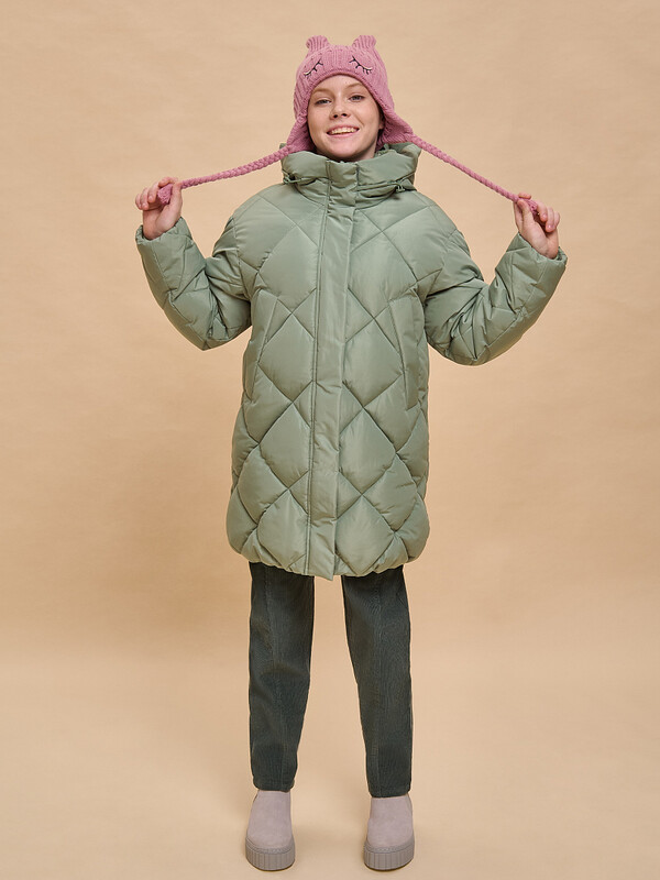 Состав: 100%полиэстер+мембрана, вставка: 100%полиэстер, подклад: 100%полиэстер, утеплитель: экопух 100%полиэстер Куртка зимняя для девочки длиной до середины бедра. Модная пухлая куртка-зефирка украшена актуальной стёжкой в виде квадратных ромбов. На внешнюю поверхность материала нанесена водоотталкивающая пропитка (DWR), она задерживает грязь и влагу снаружи — ребёнок не промокнет от снега, а комбинезон легко отстирается. Также есть дополнительная пропитка на внутренней стороне ткани — для более надёжной защиты от промокания. Капюшон с двумя швами, что обеспечивает анатомически правильную форму и комфортную посадку по голове. По краю капюшона вставка, которая также придаёт милый эффект пухлости. Предусмотрена регулировка объема капюшона эластиком с пластиковыми стопперами. Подкладка капюшона и внутренний воротник из нежного и тактильно приятного бербер-флиса с фактурой «барашек». Центральная застёжка на надежную пластиковую тракторную молнию. Куртка теплая — дополнительно, для защиты от ветра и холода, центральная молния закрыта ветрозащитной планкой на липучке (велькро). По низу рукавов внутренние манжеты из эластичной рибаны — они препятствуют задуванию ветра. Низ куртки и низ рукавов присобраны на широкую резинку с внутренней стороны, чтобы дополнительно придать изделию мягкий объём — пуховик напоминает лёгкое тёплое облачко. Можно также дополнительно уменьшить объем по низу куртки с помощью эластичного шнура по стопперами. По бокам удобные прорезные карманы, закрываются на магниты — легко открывать и закрывать даже в варежках или перчатках. Справа внутри карман на молнии для важных мелочей. Карманы утеплены флисом. В каждой куртке есть нейм-лейбл! Ребенок не потеряется и не потеряет куртку! В боковых швах и на спинке расположены светоотражающие элементы — безопасность в тёмное время суток. Изделие неприхотливо в уходе. Модель без принта. Куртка с наполнителем из полиэстера — она тёплая, легко стирается, быстро сохнет, сохраняет отличную форму и цвет надолго. Подкладка из мягкого и тёплого флиса. Отличная куртка для девочки дошкольного и младшего школьного возраста, а также девочки-подростка. Идеальная, тёплая и красивая куртка на зиму. Рекомендуемый температурный режим: не ниже минус 30 градусов. Утеплитель: экопух. Зимний пуховик подходит для носки в детский сад, школу, для прогулок и активного зимнего отдыха, игр на свежем воздухе. Помните о правильном уходе за изделием: рекомендуется стирать при температуре не выше 30 °C, без предварительного замачивания, с изнанки. Это поможет сохранить качество и цвет куртки на длительное время. Не забывайте о выборе правильного размера. Используйте таблицу размеров на фотографии, чтобы выбрать подходящий вариант для вашей девочки. Обратите внимание, что цвет товара на экране вашего устройства может отличаться от реального. Комментарии к товару
