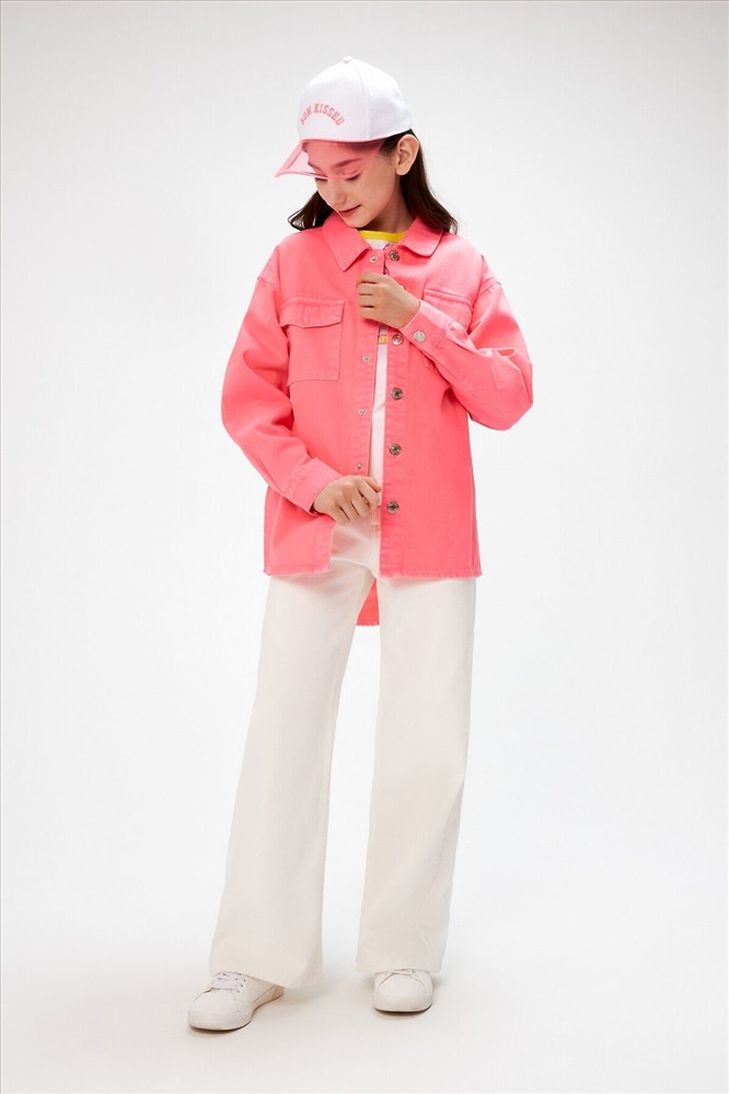 Куртка джинсовая детская для девочек Rattata неоновый розовый