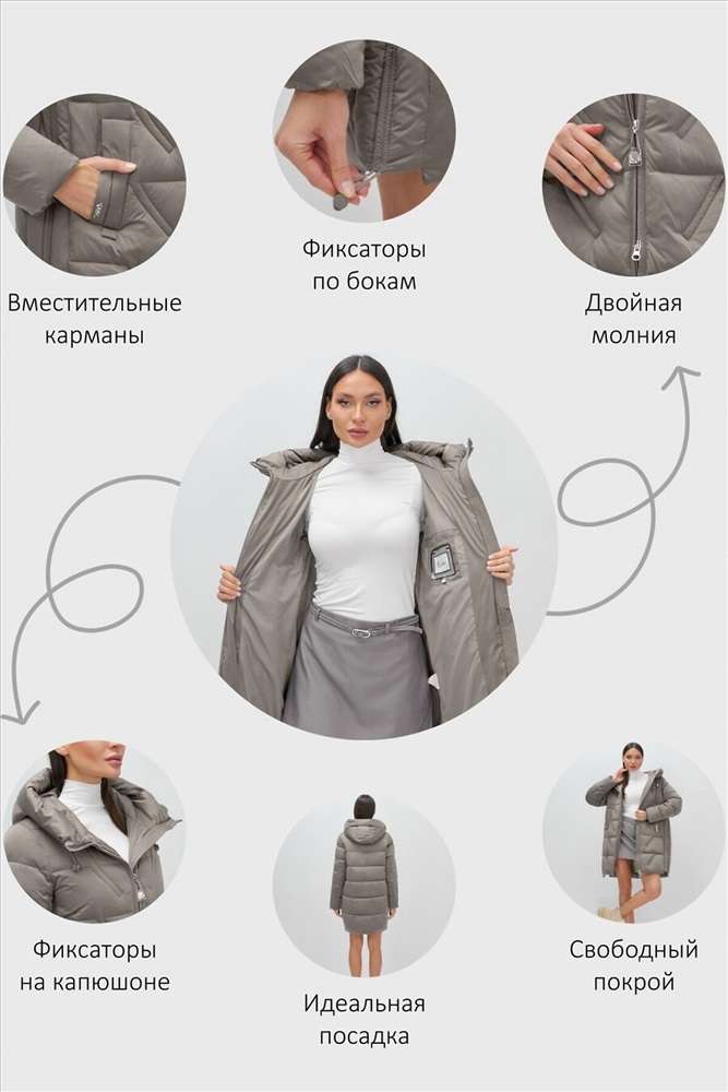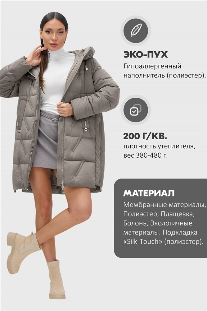 ID товара: 1213793 Состав: 100% Полиэстер Сезон: Осень/Зима Длина: Средняя Фасон: Прямой Рукав: Длинные Вид застежки: Молния Подкладка: Полиэстр Тип карманов: Прорезные Декоративные элементы: С капюшоном Стиль: повседневный Покрой: Прямой/свободный Мембрана: Да Воротник: Капюшон Внутренние карманы: Есть Водонепроницаемость: 7000мм Страна бренда: Россия Страна производства: Китай Классическая зимняя женская куртка с капюшоном – стильный и функциональный выбор для холодного сезона. Доступна в размерах от 46 до 54, эта модная куртка изготовлена из высококачественных мембранных материалов, таких как полиэстер и плащевка, что обеспечивает надежную защиту от влаги с водонепроницаемостью 7 000 мм. Состав из 100% полиэстера и синтепона гарантирует тепло даже при температурах от +5° до -20°C. Куртка имеет среднюю длину до колена, прямой и свободный крой, длинные рукава с манжетами и не съемный капюшон. Внутренние швы проклеены и прошиты для защиты от ветра, а внутренние карманы и прорезные карманы на кнопках добавляют удобства. Эта модель выполнена в элегантном, офисном/школьном и повседневном стилях, идеально подходит для различных ситуаций. Декоративные элементы, такие как капюшон и молния, придают куртке современный вид. Доступна в пяти цветах: черный, темно-серый, бежевый, коричневый и светло-коричневый. Ключевые особенности куртки: быстросохнущий, водоотталкивающий, гипоаллергенный и дышащий материал с разрезом, что делает ее идеальным выбором для осенне-зимнего сезона 2025. Выбирайте эту куртку для стильного, комфортного и защищенного образа в холодную погоду! Комментарии к товару