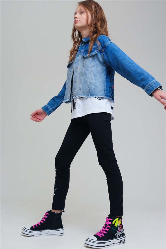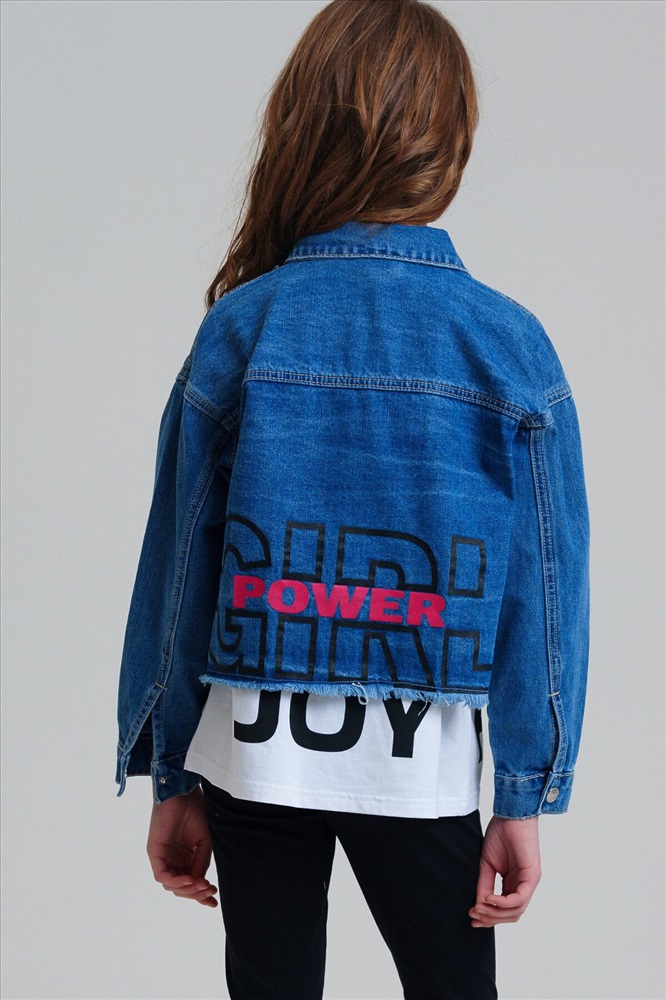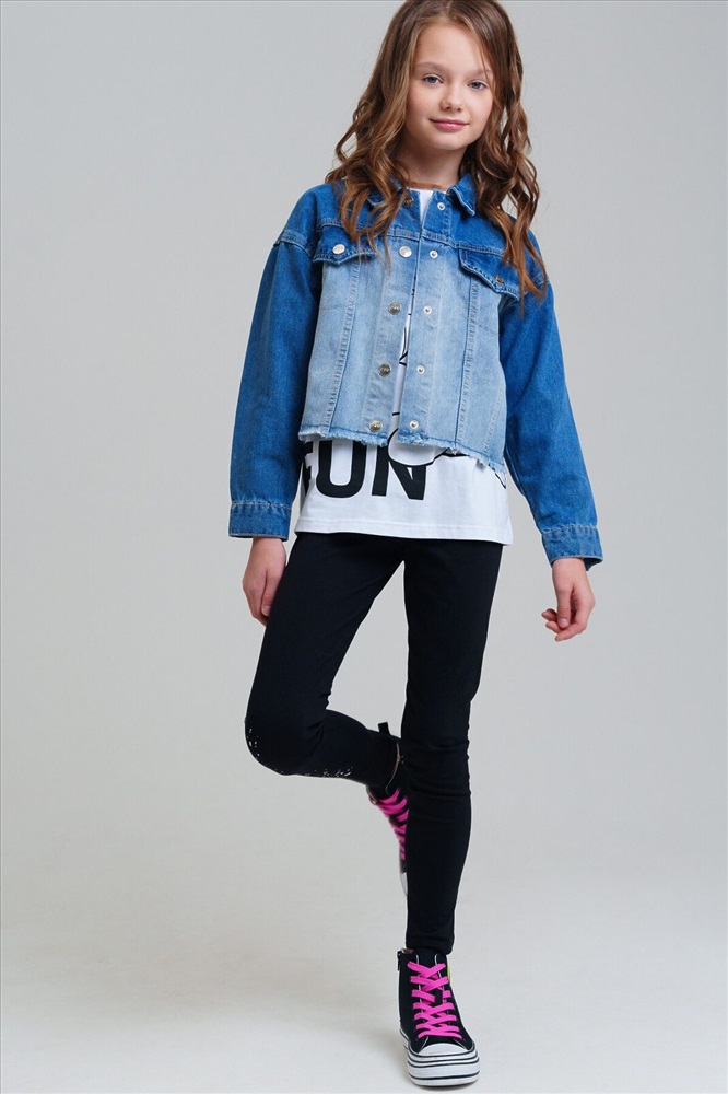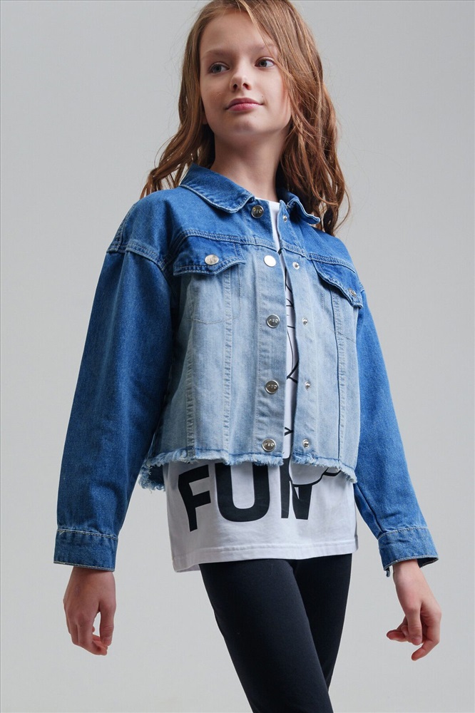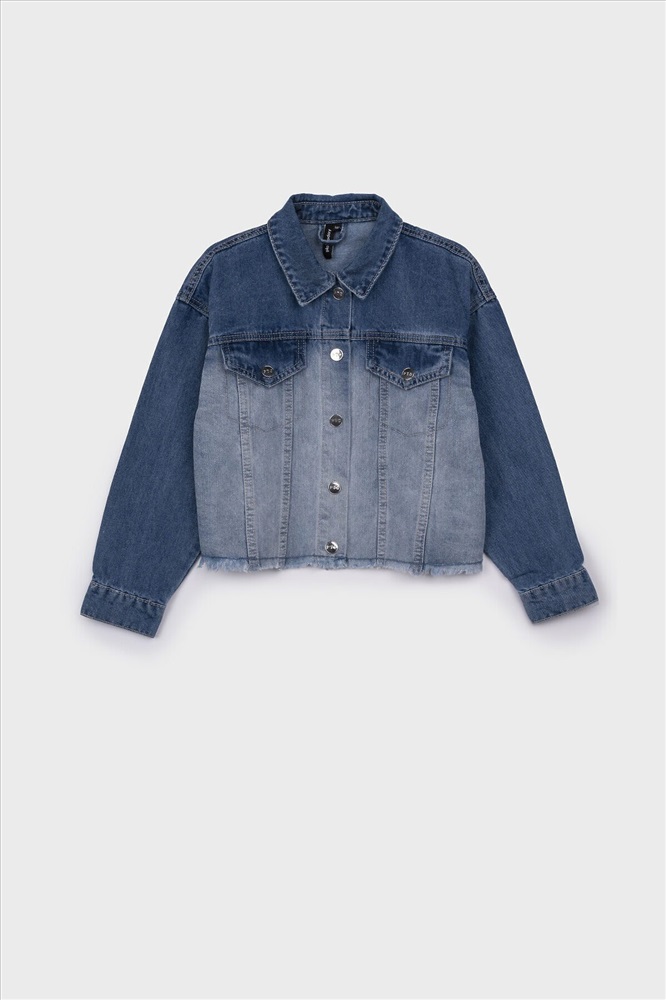 Куртка джинсовая oversize из эластичного денима. Свободная посадка. Застежка на болты. Функциональные карманы.