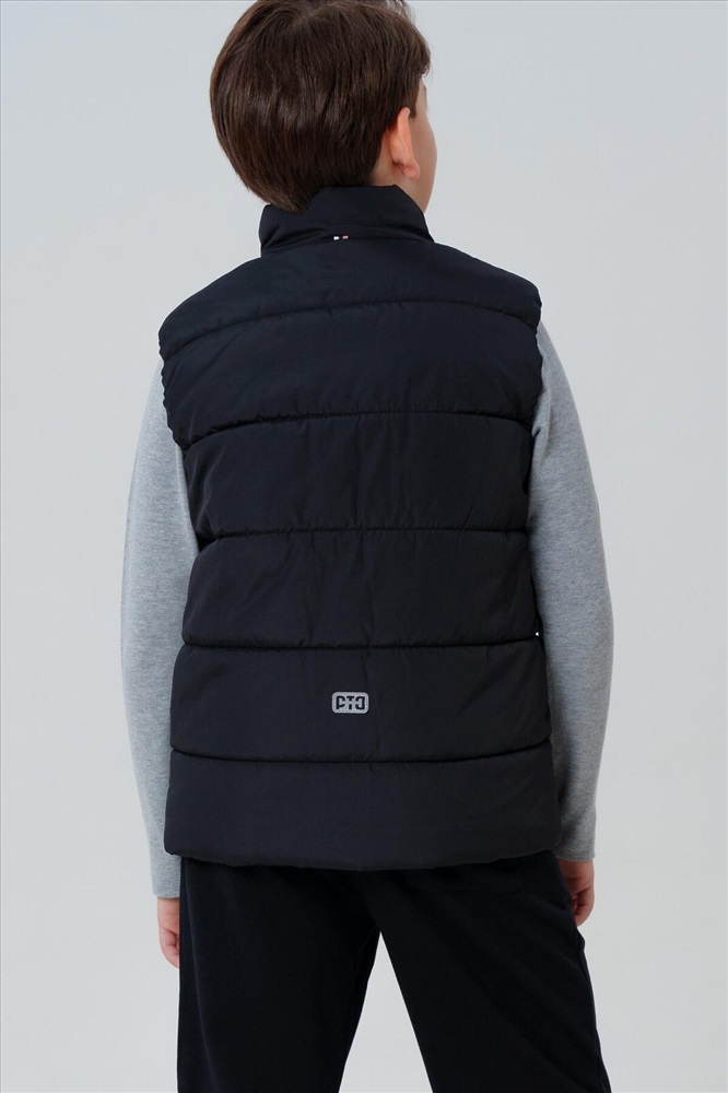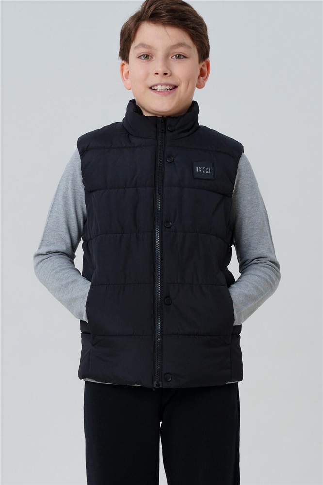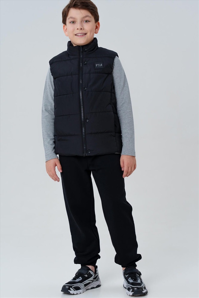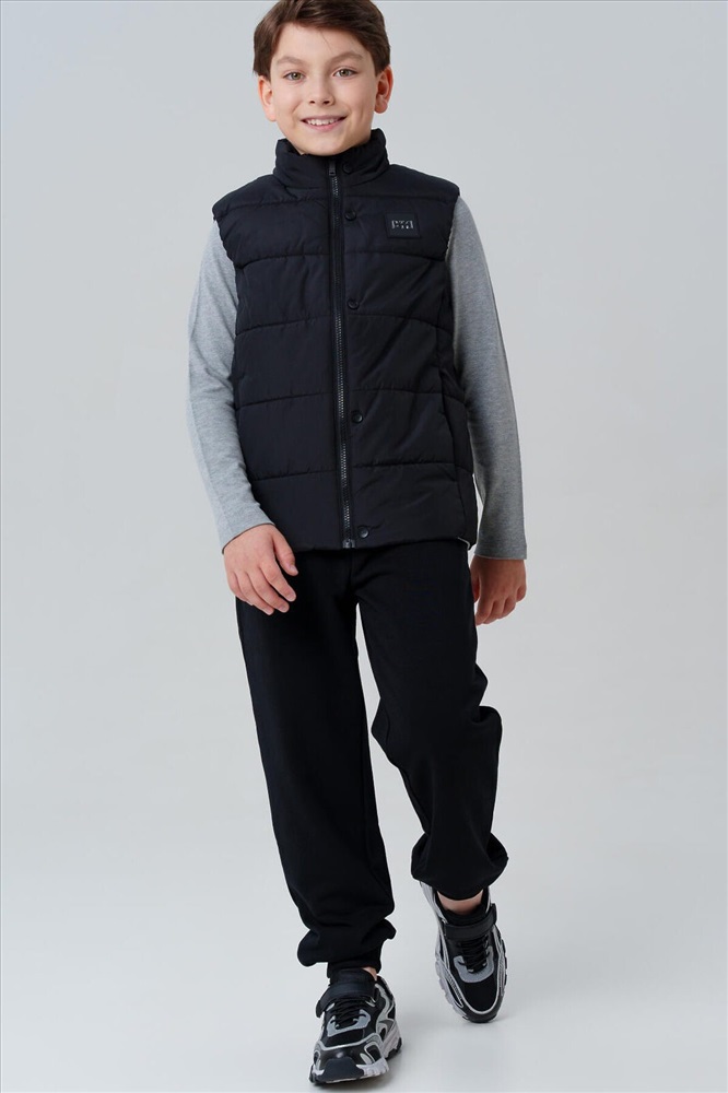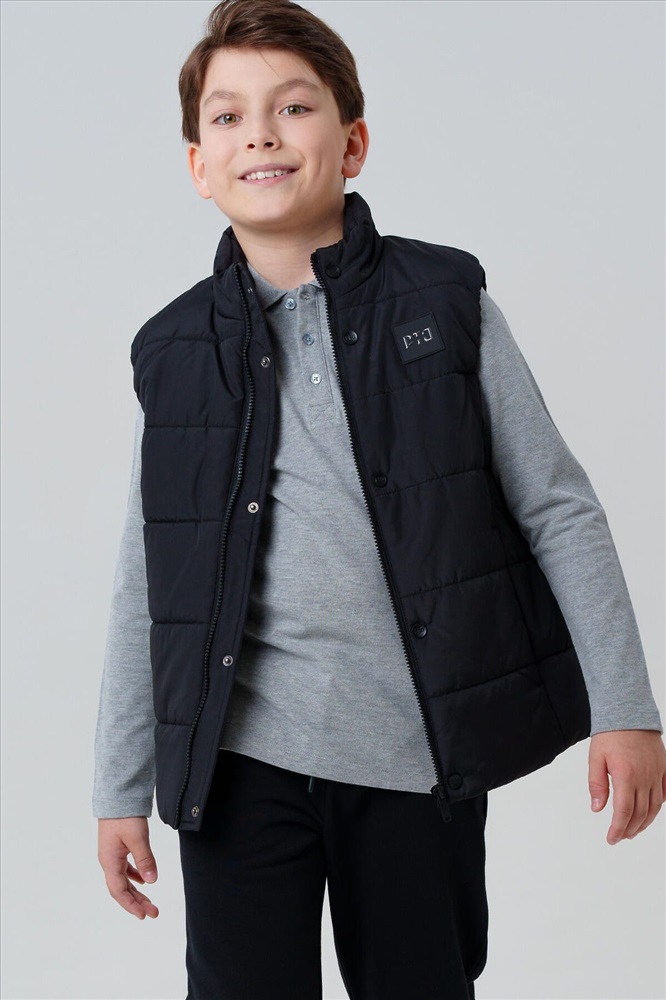 Демисезонный школьный черный жилет для мальчика подростка от PlayToday — практичный и стильный выбор для школы и активных прогулок в прохладную погоду. Такой утепленный подростковый жилет на осень надёжно защищает от ветра и легкой влаги благодаря современным непромокаемым материалам, а тёплая подкладка из таффеты обеспечивает уют и комфорт в течение всего дня. Преимущества модели: + температурный режим до +10°C + влагозащитная и ветрозащитная ткань + тёплая гладкая подкладка из таффеты + функциональные карманы + лёгкий вес и свобода движений + универсальный черный цвет + легкий уход Этот черный универсальный жилет для школы прекрасно садится по фигуре, не стесняет движений и отлично комбинируется с любой школьной формой. Практичные карманы позволяют хранить важные мелочи, а прямой силуэт подходит и для строгих, и для повседневных образов. Лёгкая, но тёплая модель создана специально для межсезонья — оптимально для температуры до +10°C. Детский школьный жилет для мальчиков не продувается, не промокает и при этом остаётся дышащим — ребёнку комфортно на переменах, на улице и в пути в школу. Совет по стилю: носите классический жилет для подростков поверх худи или свитшота в прохладные дни, или сочетайте с рубашкой и классическими брюками от PlayToday для сдержанного образа. Универсальная модель для осенних будней и активного отдыха. Утепленный жилет на весну для школьника не требует сложного ухода, быстро сохнет и долго сохраняет аккуратный вид.