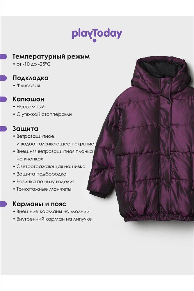 ID товара: 1178849 Состав: Верх- 100% Полиэстер; Подкладка- флис; Наполнитель- Искусственный пух 300 г/м2 Сезон: Весна/Лето Длина: Средняя Фасон: Свободный Рукав: Длинные Вид застежки: Шнурок Тип карманов: Прорезные Декоративные элементы: С капюшоном Утеплитель: с утеплителем, Искусственный пух 300 г/м2 Стиль: Повседневный Реком. темп. режим: до -25ºС Страна бренда: Германия Страна производства: Китай Классическая зимняя школьная куртка для девочки подростка от бренда PlayToday — уют и стиль в одном решении для холодной осени и зимы. Преимущества модели: + температурный режим до -25°C* + водоотталкивающее и ветрозащитное покрытие + мягкая флисовая подкладка + боковые карманы на молнии + внутренний карман на липучке + несъёмный капюшон с утяжкой-стопперами + эластичная резинка по низу изделия + трикотажные манжет + ветрозащитная планка на кнопках + универсальный бордовый цвет + легкий уход Эта бордовая зимняя куртка создана для девочек, которые ценят комфорт и не боятся выделяться в школьной толпе. Практичная, тёплая, с лаконичным дизайном — она одинаково хорошо подойдёт и для активных игр на улице, и для прогулок после уроков. Модель выполнена из плотной ткани с влагозащитной пропиткой — надёжная защита от снега, дождя и пронизывающего ветра. Внутри — мягкая флисовая подкладка, которая создаёт ощущение уюта даже в самые прохладные дни. Резинка по низу такой стильно утепленной куртки для школьницы помогает сохранить тепло, а свободный крой не сковывает движений. Капюшон с утяжкой-стопперами надёжно фиксируется, защищая от осадков, а вместительные боковые карманы и скрытый внутренний на липучке — настоящая находка для школьницы, которая любит иметь под рукой всё необходимое, особенно, любимые перчатки PlayToday. Бордовый цвет добавляет образу глубины и актуальности — такая модная детская куртка для подростков подойдёт и к джинсам, и к классическим школьным брюкам. Уход прост: стирка при 30°C — и ваша куртка снова как новая. Модель представлена в размерах на рост 128–170 см — отлично подойдёт для девочек 8–16 лет. Модная подростковая зимняя куртка в школу для девочки PlayToday — тёплая, практичная и красивая вещь, которая понравится и родителям, и самой моднице. *Температурный режим ориентировочный. Реальный комфорт зависит от возраста, активности, количества слоёв одежды и погодных условий. Комментарии к товару