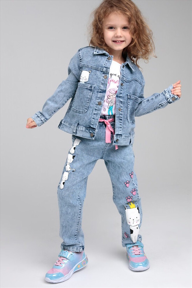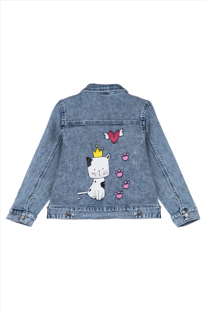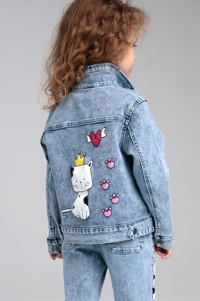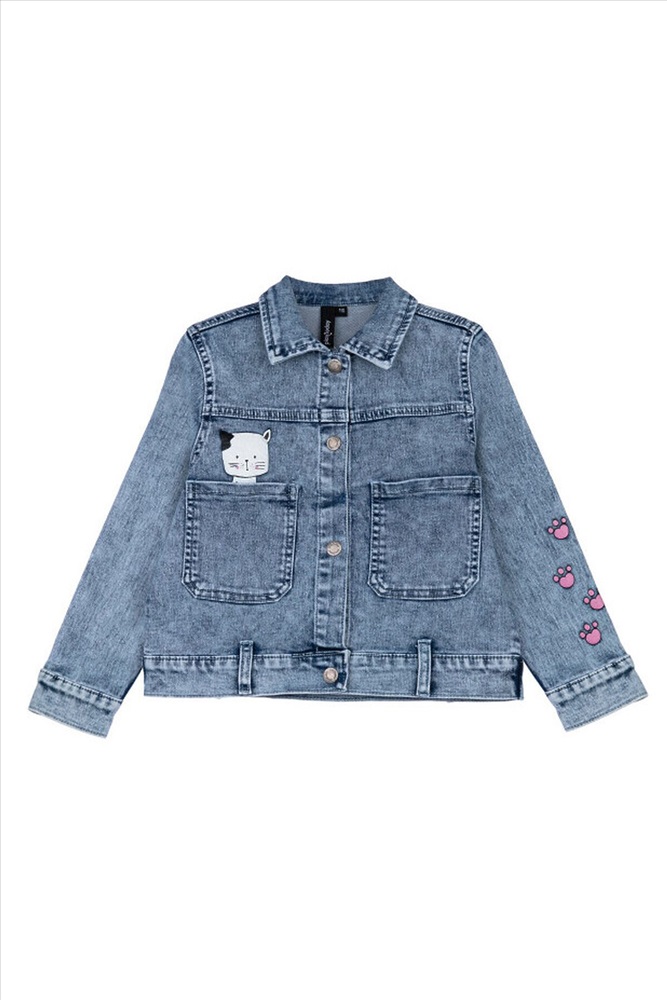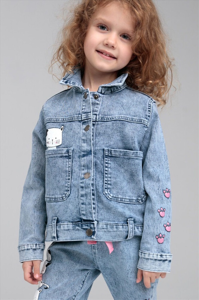 Куртка джинсовая из эластичного денима. Классическая посадка. Средняя длина. Застежка на кнопки.