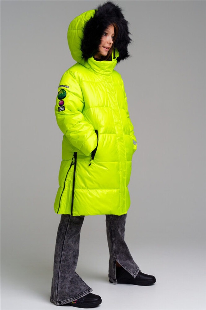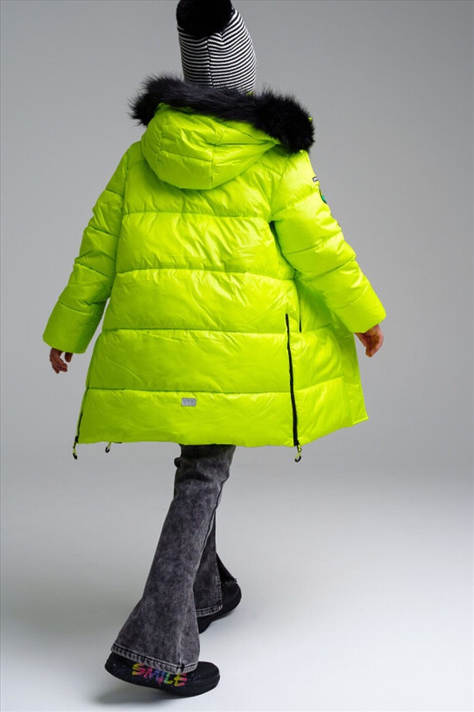 Пальто зимнее. Линия Nord - высокая степень теплозащиты. Температурный режим до -15С. Материал верха с ветрозащитным и водоотталкивающим покрытием. Внутренняя и внешняя ветрозащитные планки. Два боковых кармана на молнии. Внутренний карман. Подкладка - флис. Несъемный капюшон регулируемый шнурком. Съемный искусственный мех. Эластичный манжет по низу рукава. Светоотражающие элементы. *температурный режим является рекомендованным, необходимо учитывать уровень активности ребенка и многослойность поддевочной одежды (термобелье, флис).