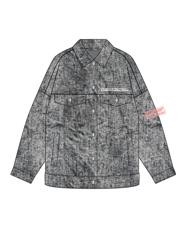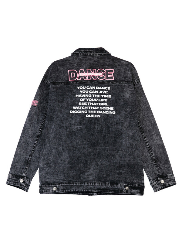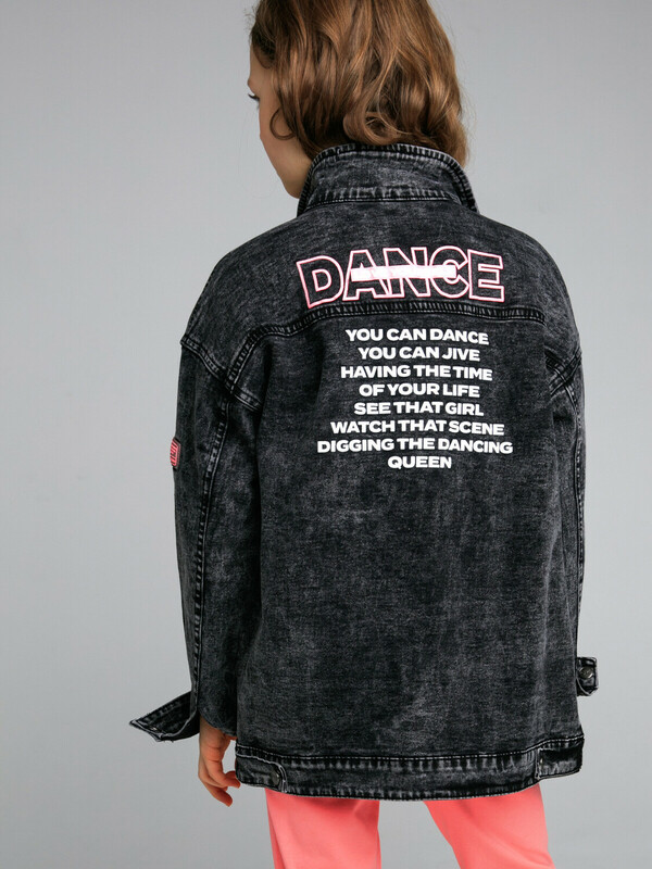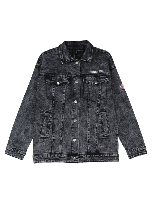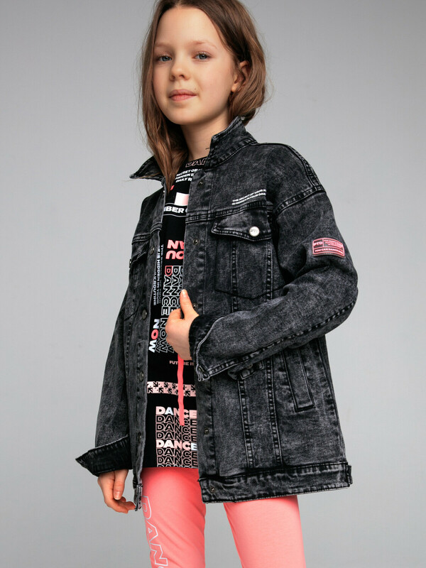 Куртка джинсовая из эластичного денима; свободная посадка; удлиненная; застежка на кнопки