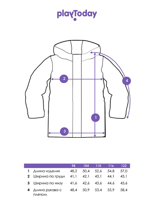 Производитель: PlayToday Куртка зимняя из мембранной ткани 5000*5000. Линия Nord - высокая степень теплозащиты. Температурный режим до -25С. Материал верха с ветрозащитным и водоотталкивающим покрытием. Внутренняя и внешняя ветрозащитные планки. Два боковых кармана на молнии. Внутренний карман. Потайной карман на молнии на левом рукаве. Подкладка - флис. Съемный капюшон с креплением на кнопках. Низ рукава на эластичном манжете с отверстием для большого пальца, регулировка ширины липучкой. Текстильный клапан для защиты подбородка при застегивании молнии. Светоотражающие элементы. *температурный режим является рекомендованным, необходимо учитывать уровень активности ребенка и многослойность поддевочной одежды (термобелье, флис).