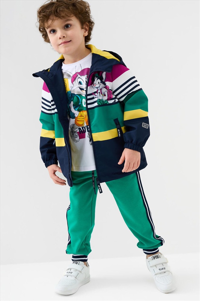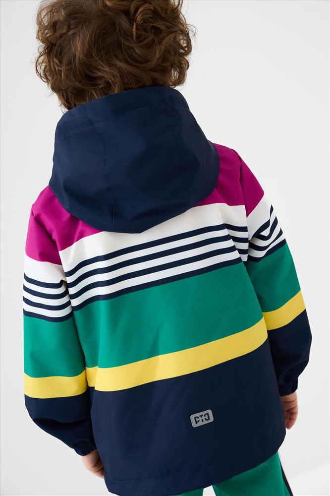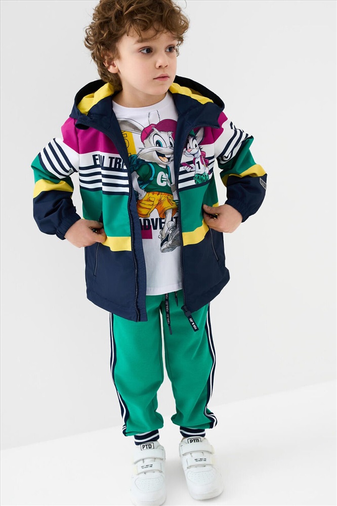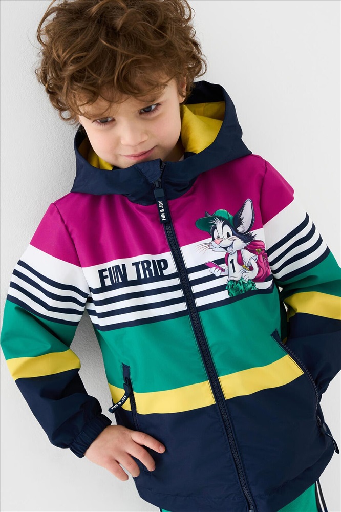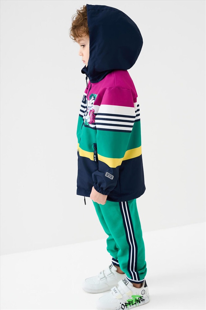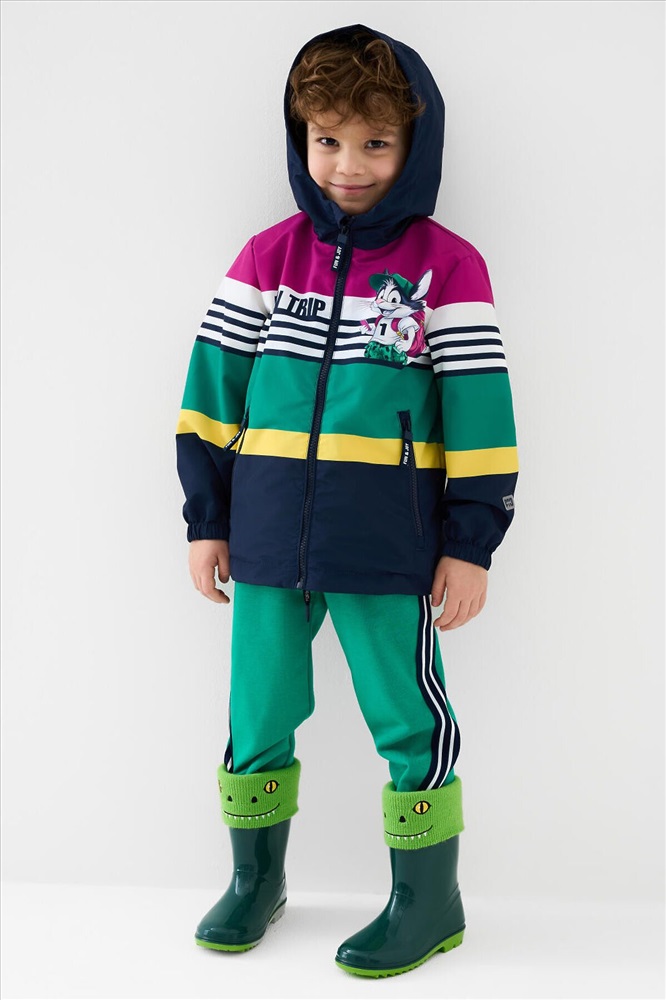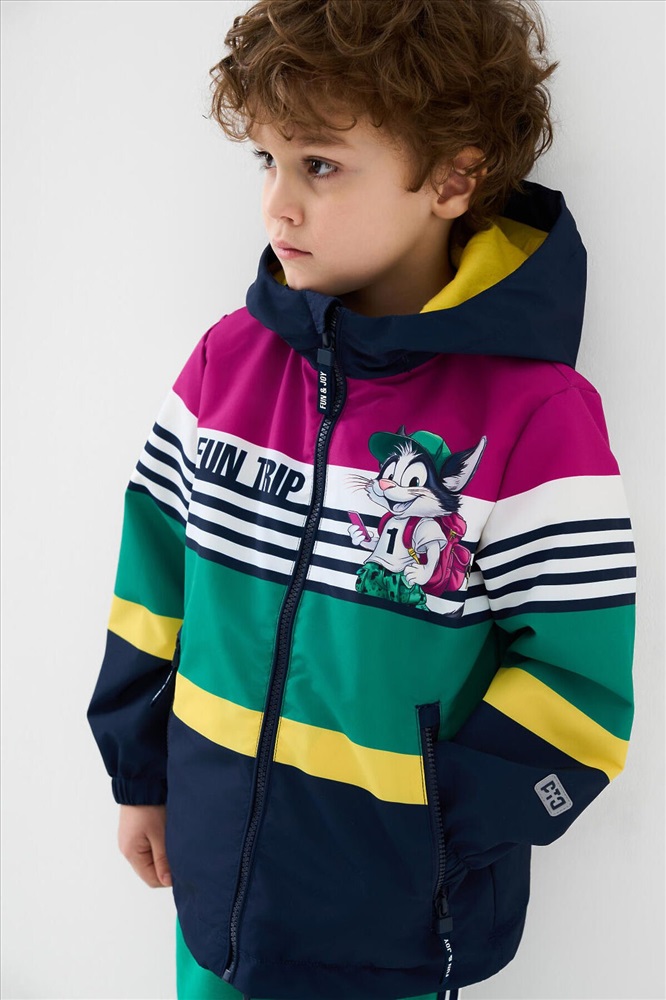 ID товара: 1240303 Состав: Верх- 100% полиэстерПокрытие- мембрана 5000x5000Подкладка- трикотаж Сезон: Весна/Лето Детская ветровка с мембраной для мальчика. Температурный режим от +20С до +10С. Ткань с мембранным покрытием 5000х5000 обеспечивает защиту от ветра и влаги. Внутри мягкая подкладка из трикотажа для комфортной носки. Модель прямого кроя средней длины с ярким дизайном. Капюшон несъёмный, регулируется резинкой со стопперами для плотного прилегания. Центральная застёжка — молния, дополнена внутренней планкой от ветра. По бокам расположены два кармана на молнии. Низ изделия с утяжкой стопперами. Манжеты на резинке для защиты от продувания. На рукавах и спинке размещены светоотражающие элементы для дополнительной безопасности ребёнка в тёмное время суток. Комментарии к товару