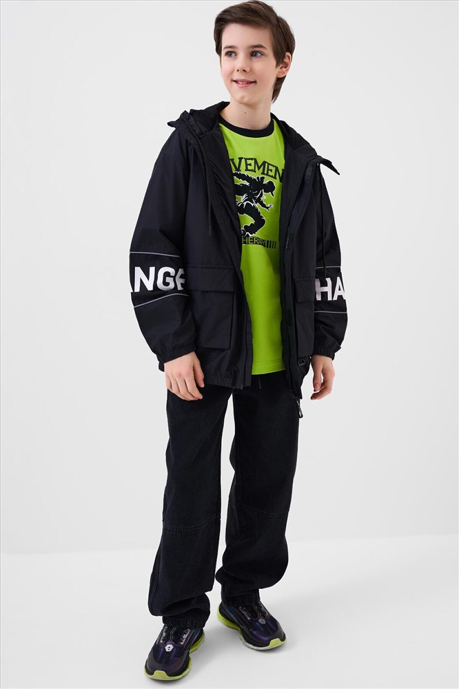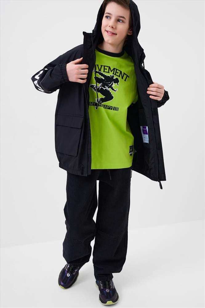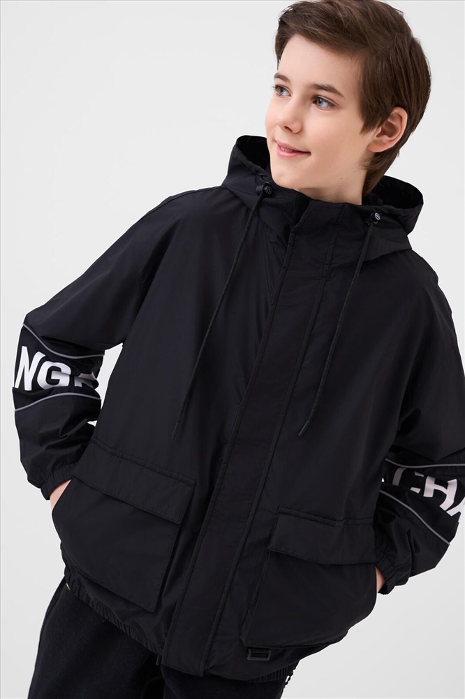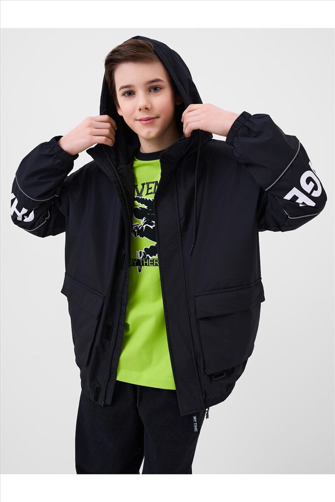 ID товара: 1243938 Состав: Верх- 100% полиэстерПодкладка- трикотаж Сезон: Весна/Лето Ветровка на трикотажной подкладке для мальчика подростка. Температурный режим от +20°C до +10°C. Ветрозащитное и водоотталкивающее покрытие. Модель выполнена в черном цвете с контрастными белыми деталями. На рукавах — вставки со светоотражающей полосой. Два объемных кармана на липучках с дополнительным боковым входом. Капюшон регулируется шнуром. По низу изделия и на рукавах — мягкие резинки. Внутренний карман на липучке и петелька для вешалки. Светоотражающие элементы добавляют безопасность в тёмное время суток. Комментарии к товару