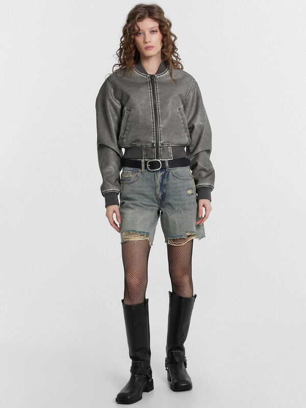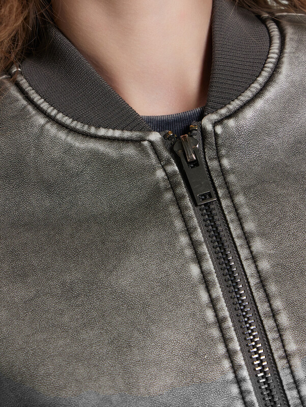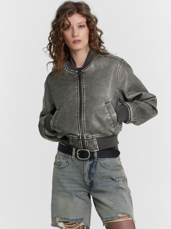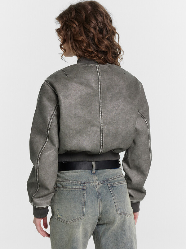 Женская кожаная куртка бомбер станет великолепным дополнением для ваших стильных и современных образов. Модель укороченной длины с застежкой-молнией и боковыми карманами сочетает в себе элегантность и практичность. Длинные рукава с эластичными манжетами обеспечивают удобство и добавляют динамичный вид. Изделие выполнено из высококачественной искусственной кожи. Такой бомбер идеально подходит для создания современных и выразительных нарядов, которые подчеркнут вашу индивидуальность и утонченность.