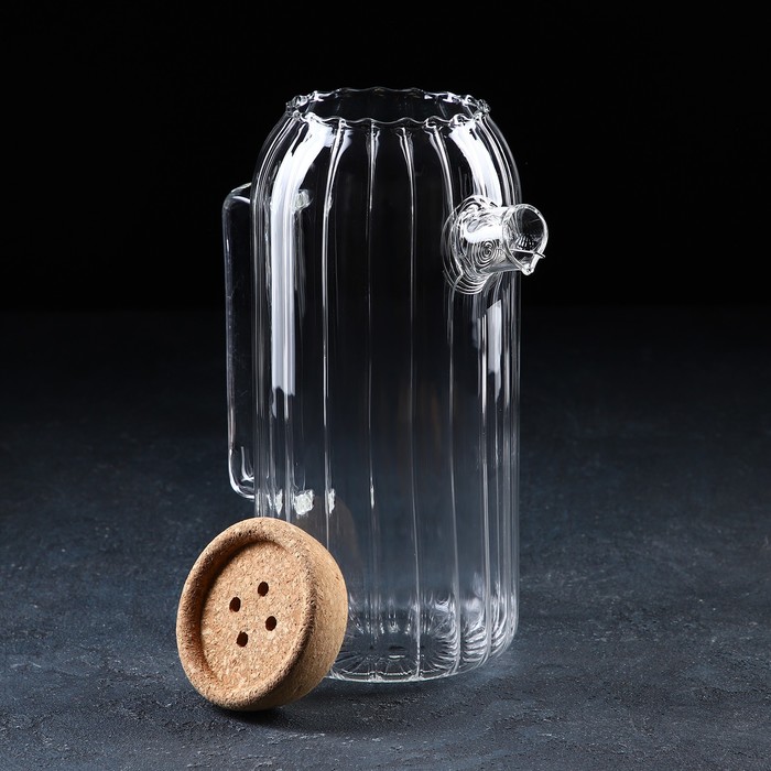 Кувшин Magistro «Эко» изготовлен из экологически безопасных материалов: стекла и пробкового материала. Этот предмет посуды впишется в любой интерьер кухни, так как не имеет деколи и выполнен в классическом стиле.