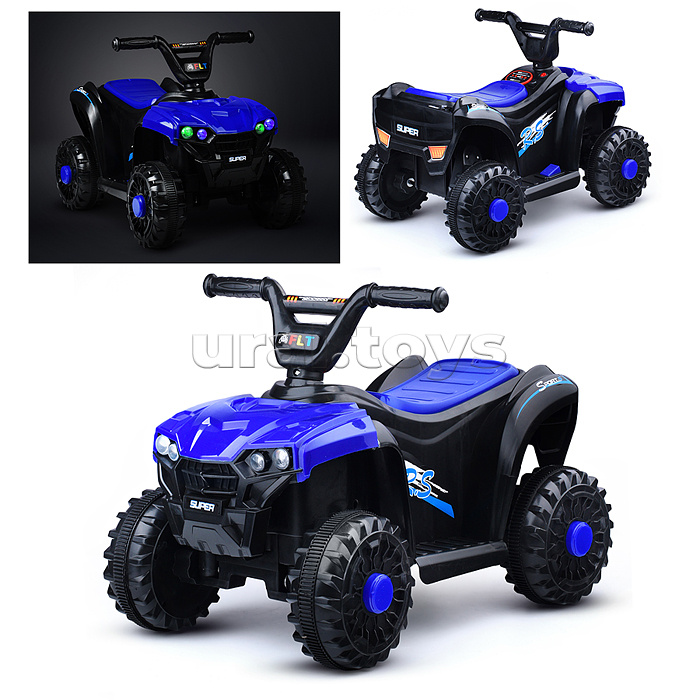 Цвет: Синий Напряжение аккумулятора: 6 Количество мест: 1 Емкость аккумулятора: 4.5 Возраст: от 3 лет Материал колес: Пластик Свет: Да Звуковые эффекты: Да Количество моторов: 1 Пульт ДУ: Нет Максимальная нагрузка: 30 Вид транспорта: Квадроцикл Лицензия: Нет Привод полный: Нет Код: 437941 Штрихкод: 6904110084513 Страна производитель: Китай Размеры упаковки: 64 x 38 x 30 см Количество в коробке: 1 • Размеры игрушки: 65х40х49 см. • Работает от аккумулятора 6V4.5AH. • Мощность аккумулятора: 20 Вт. • Время зарядки: 8-12 часов. • Время работы: 1.5-2 часа. • Зарядное устройство в комплекте. • Максимальная скорость: 4 км\ч. • Функции: - движение вперёд и назад (осуществляется при нажатии на педаль газа). - при повороте руля поворачиваются передние колёса. - свет фар. - проигрывает музыкальные мелодии (фрагменты). - сигнал клаксона. - регулировка громкости. • Максимальная нагрузка: 30 кг. • Вес игрушки: 4.5 кг. • Пластиковые колёса (d=20 см.) • Высота от пола до сиденья: 30 см. • Дорожный просвет: 8 см. • Материал: пластик. • Игрушка поставляется в разобранном виде. Инструкция по сборке прилагается. • Соответствует требованиям безопасности продукции. • Для детей от 2-х до 6 лет. Комментарии к товару