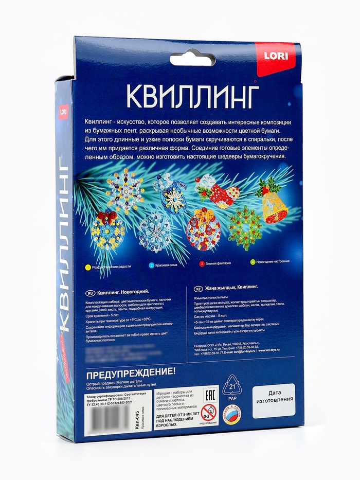 Габариты: 24 x 15 x 3,5 Страна: Россия В боксе: 12 шт Состав: См. на упаковке Материалы: см. на упаковке Фасовка: по 1 шт Индивидуальная упаковка: Цветная картонная коробка Сертификат: ЕАС Для кого: Унисекс Возраст: От 8 лет Символ года: Нет Тематика праздника: Новый год Адресат: Без адресата Возраст: Любой Материал для аппликации: Бумага Фиксированная цена: Да Погрузитесь в атмосферу зимнего волшебства с набором для творчества! Этот набор станет отличным спутником для тех, кто любит создавать красоту своими руками. Он подарит не только праздничное настроение, но и вдохновение для создания изящных бумажных композиций в технике квиллинг — лёгких, воздушных и по-настоящему зимних. В наборе: