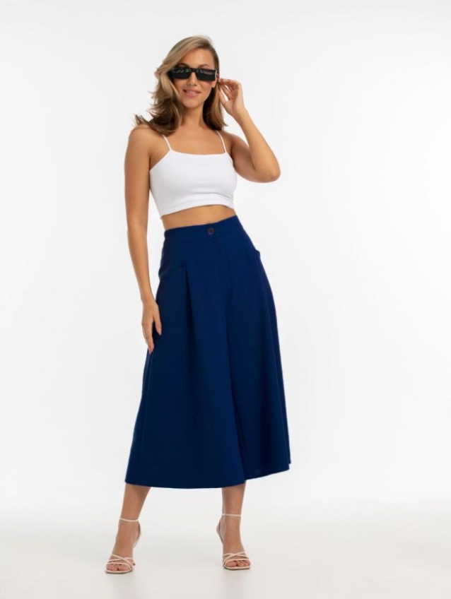 Укороченные широкие брюки - кюлоты с карманами и резинкой на талии подойдут женщинам любой комплекции и возраста. Комбинируя с различным верхом и обувью можно кардинально менять образ от строгого делового до расслаблено неформального.