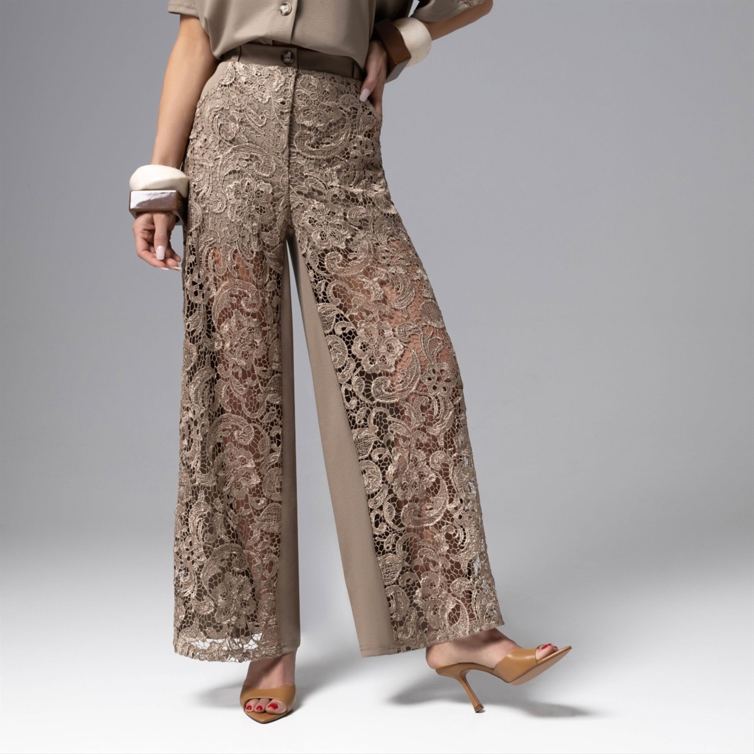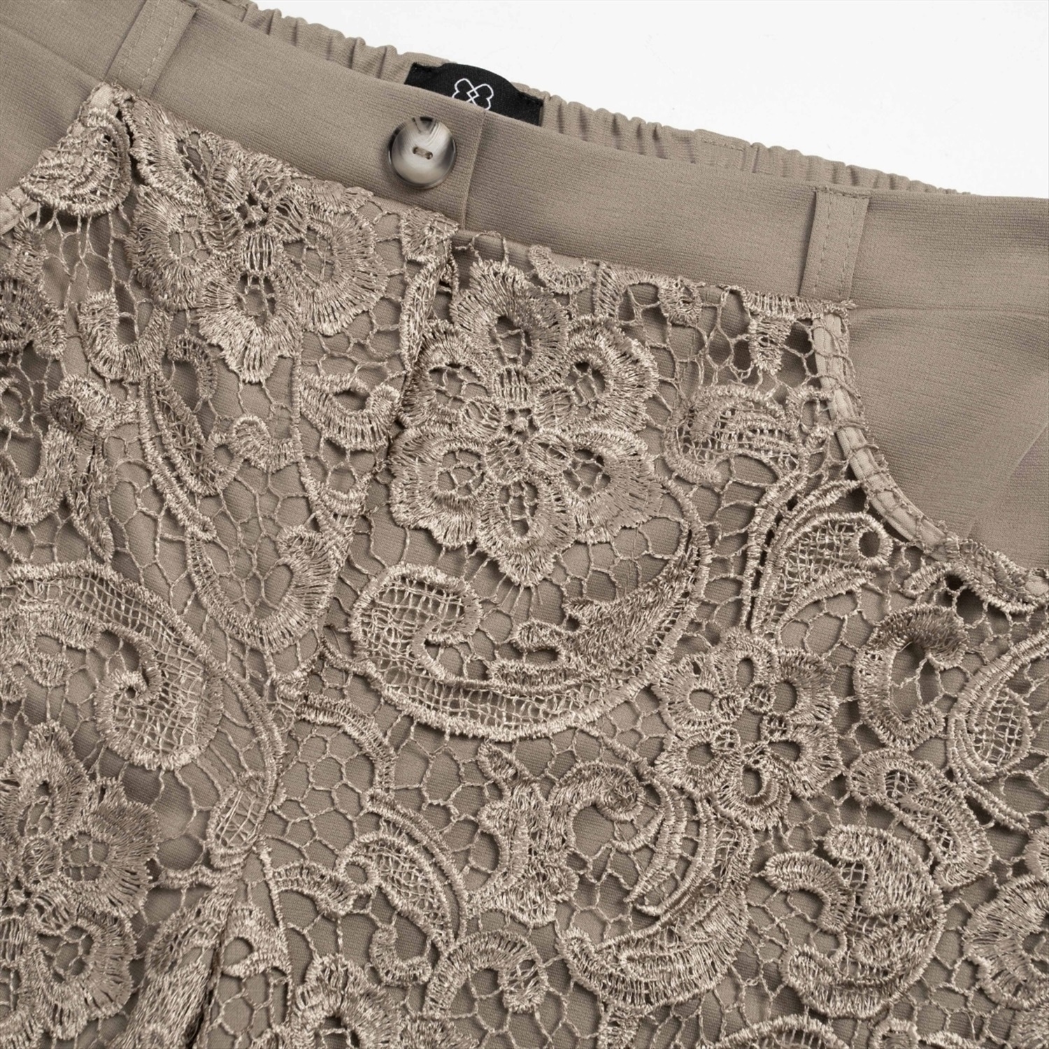 Благородство в каждом движении. Тончайшее кружево подвижно и с каждым шагом будет играть со взглядом смотрящего. Интригующая прозрачность и изысканная нежность материала никого не оставят равнодушным. Кюлоты многослойные в комбинации материалов. Есть внутренняя часть в виде шорт. Посадка на талии, колоты застегиваются на пуговицу. Есть шлевки. Изделие с карманами. Комментарии к товару