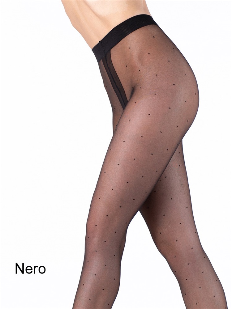 Тонкие фантазийные колготки, по всей длине рисунок "мелкий горошек", широкий комфортный пояс, плоские швы, невидимые мыски.