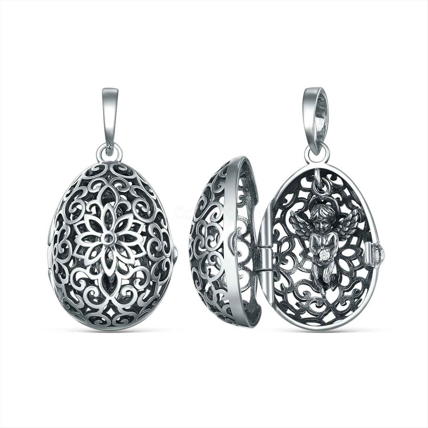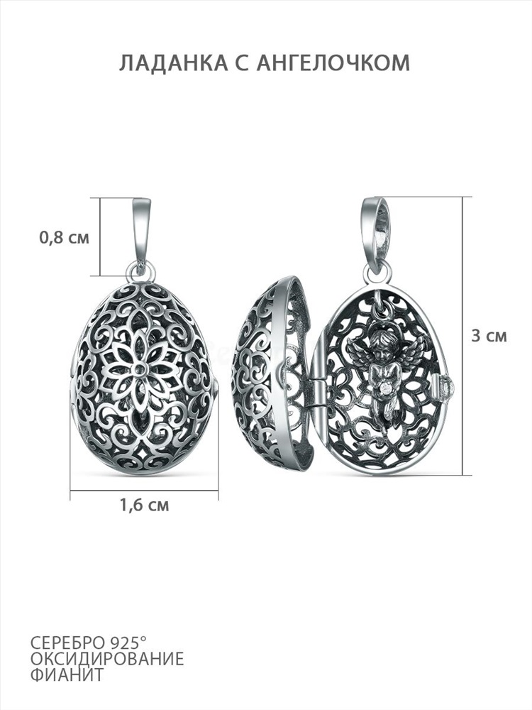 Ладанка с ангелочком из чернёного серебра с фианитом ЛП-009ч